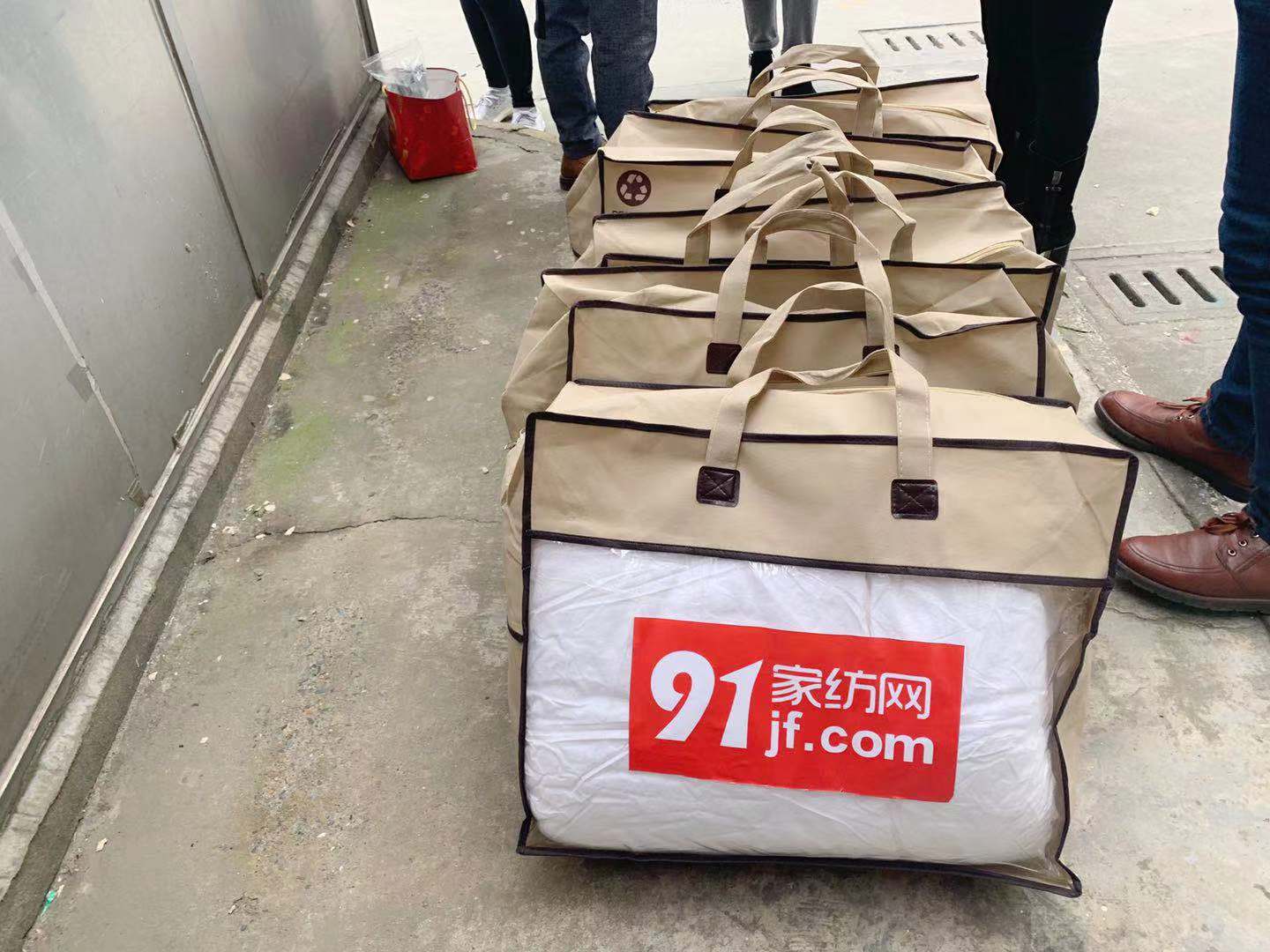 首先,为老人送上91家纺网提供的被子,希望能带给他们来自91家纺网的温暖。