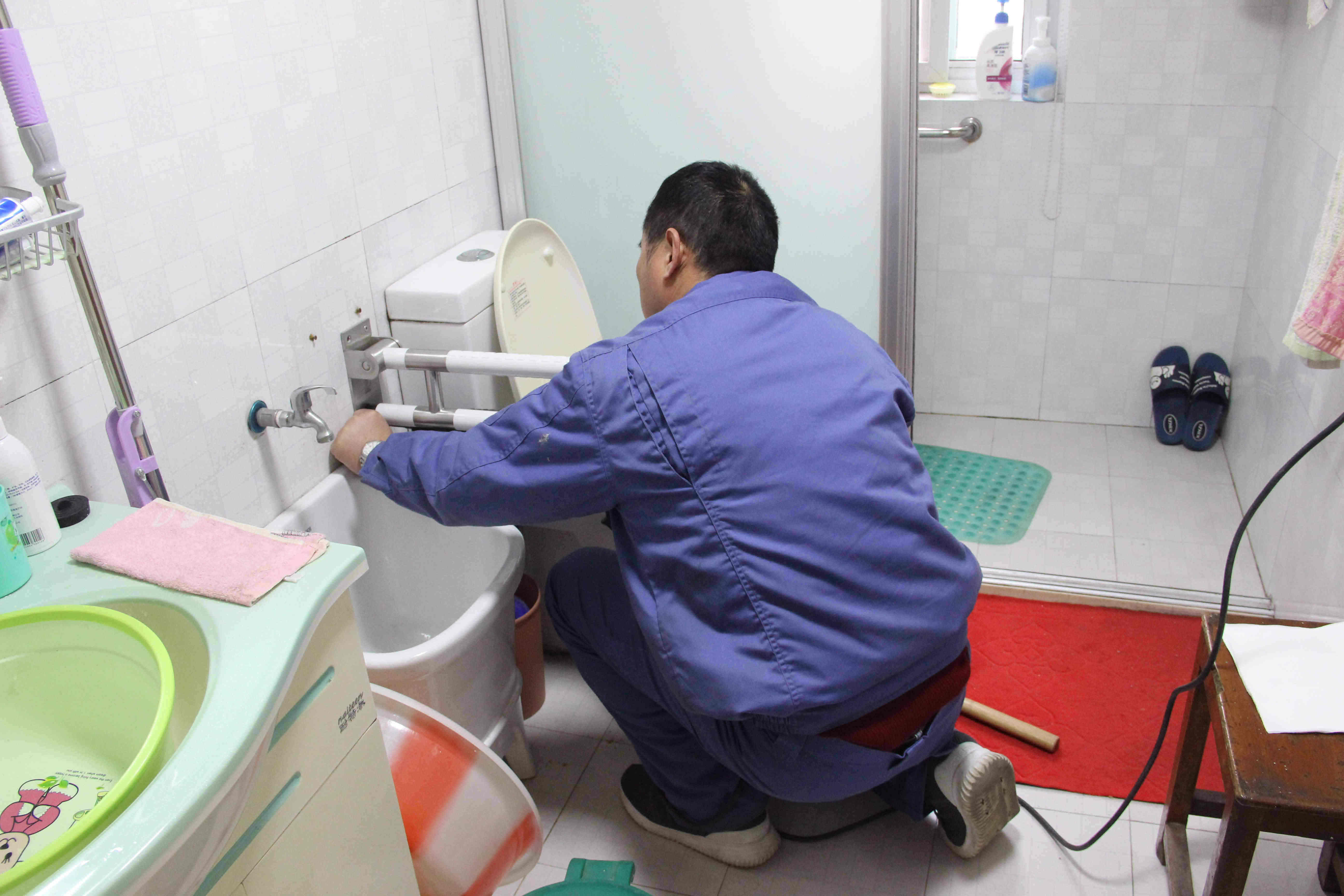 接着,中国狮子联会的安装师傅们,开始给老人的家中的卫生间里安装便于他们行动的扶手和座椅。