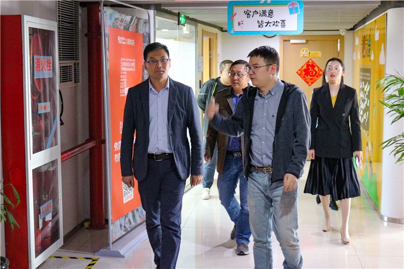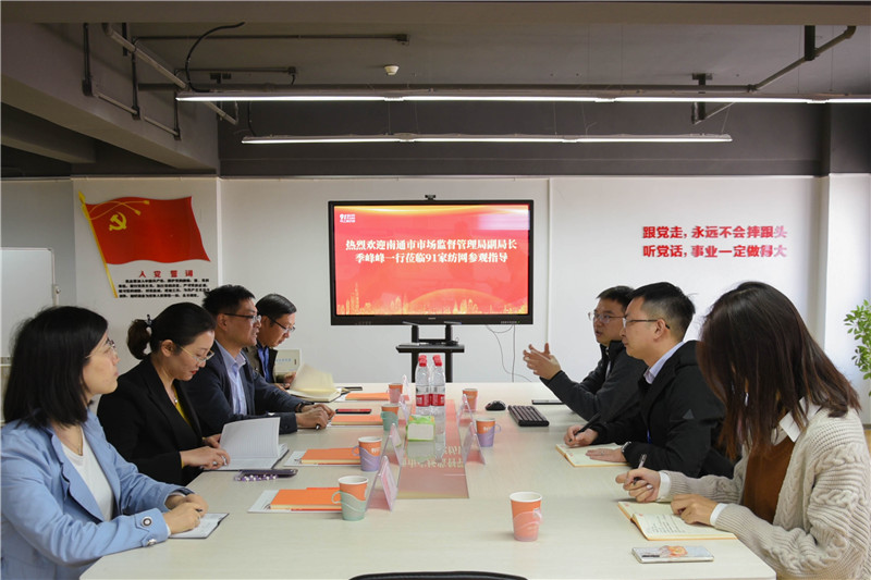 2020年10月30日上午,南通市市场监督管理局副局长季峰峰一行莅临江苏九一网络科技有限公司参观指导,91家纺网创始人黄永峰热情接待。