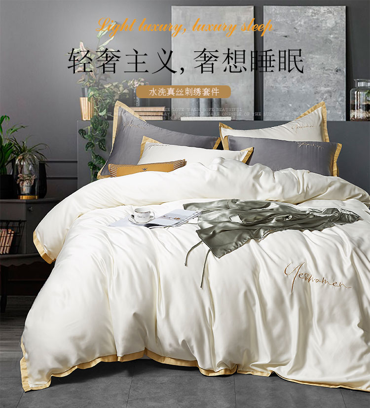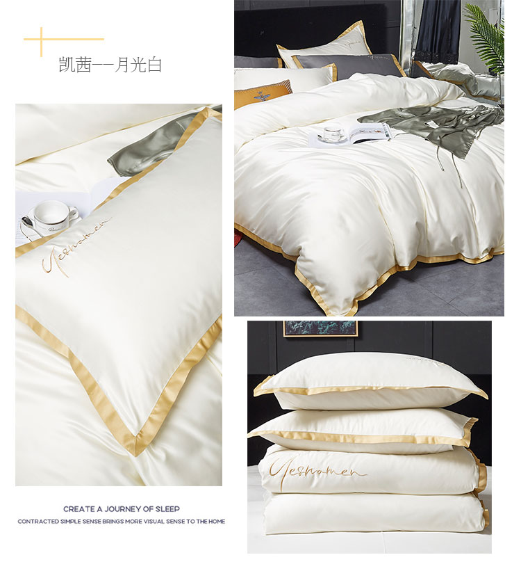 商品名称:安妮 2020新款水洗真丝凯茜四件套 月光白