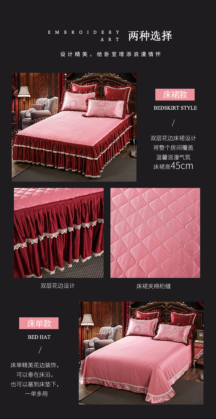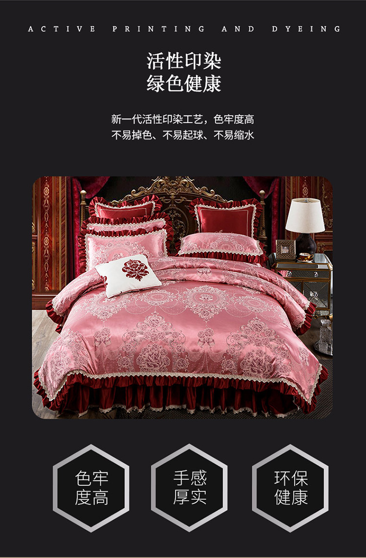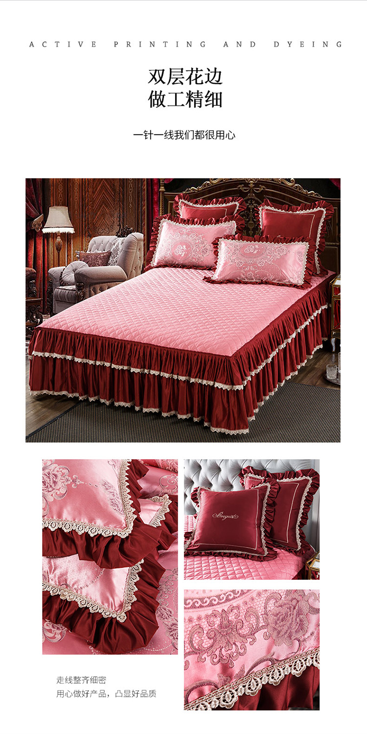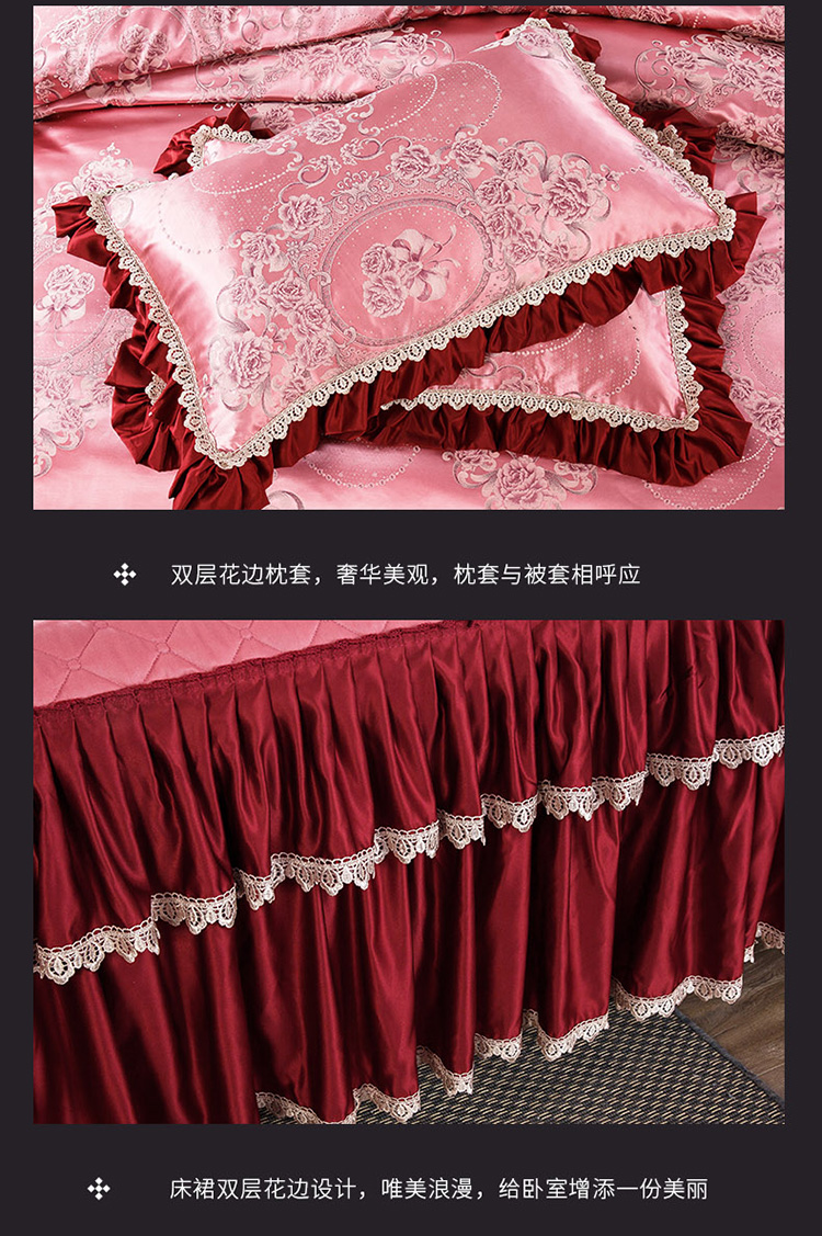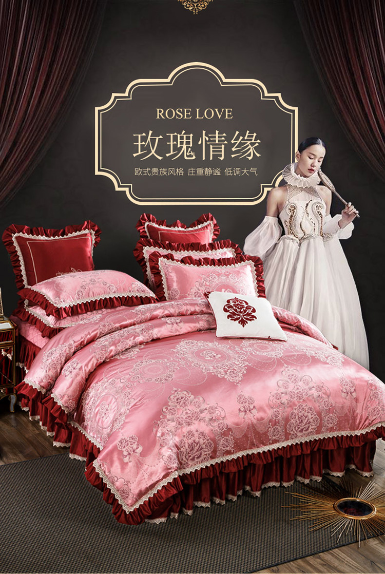 兴美佳欧式提花贡缎双层花边夹棉床单床裙四件套玫瑰情缘