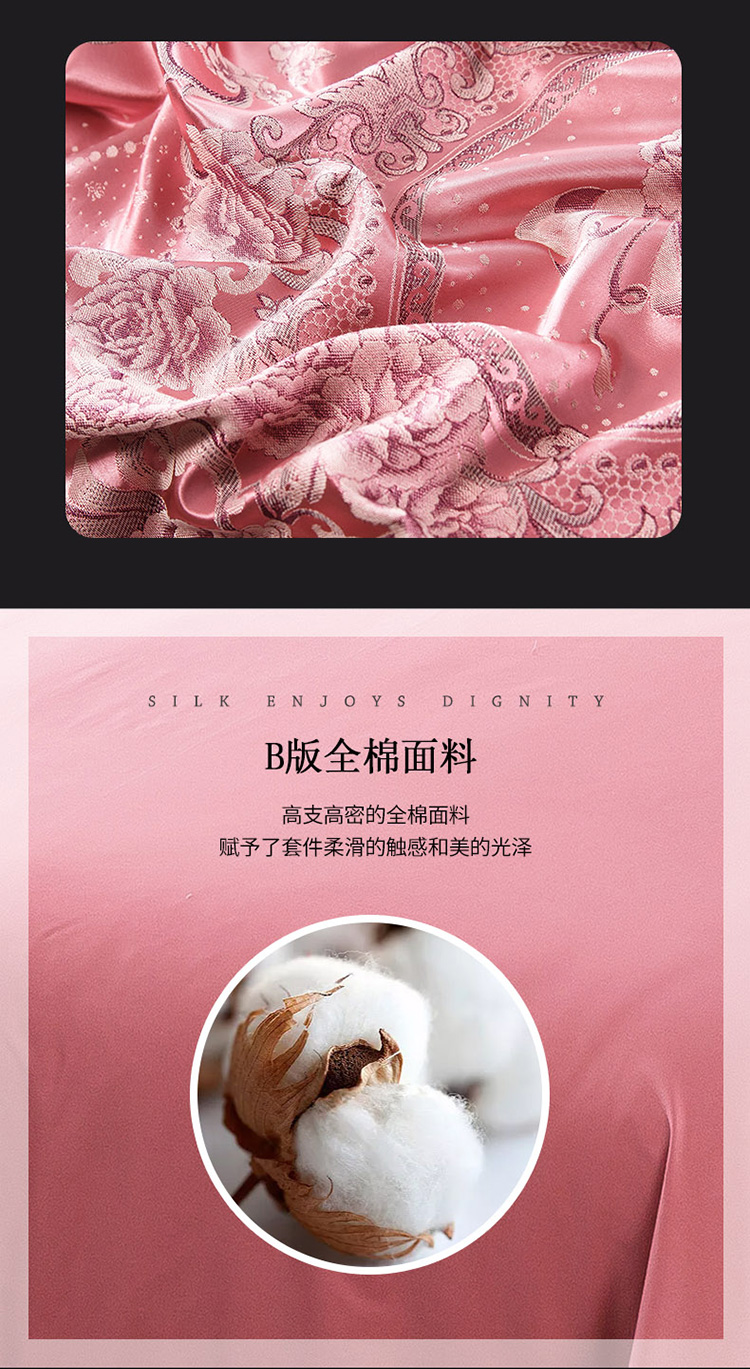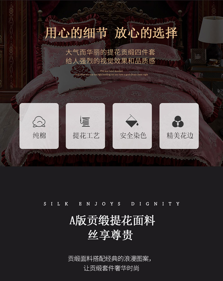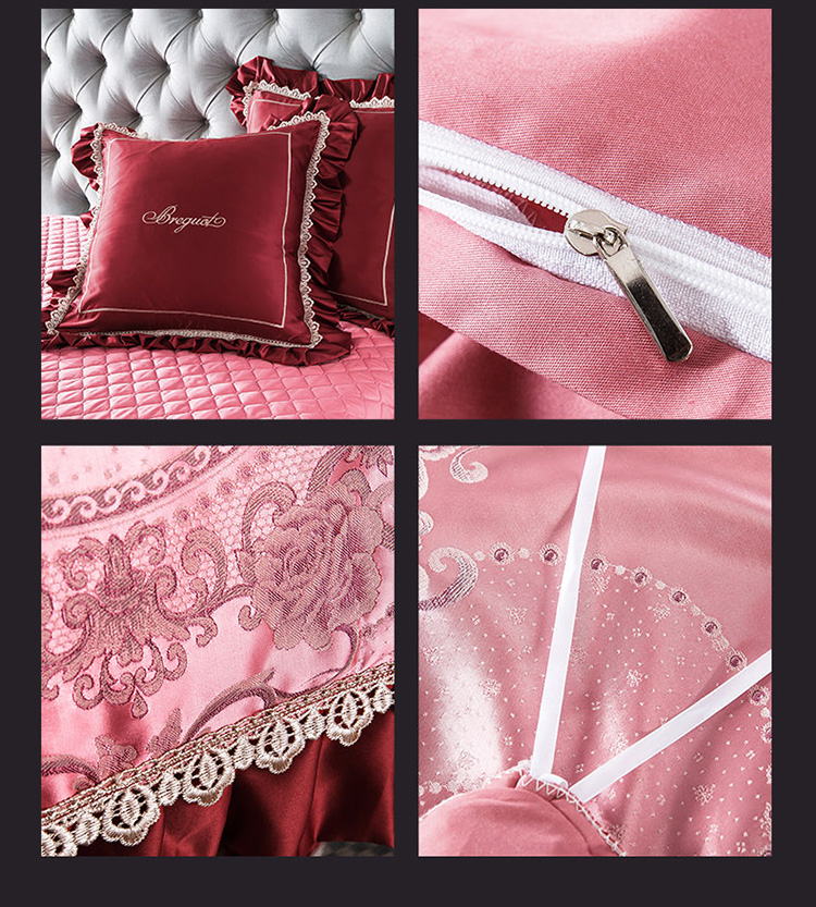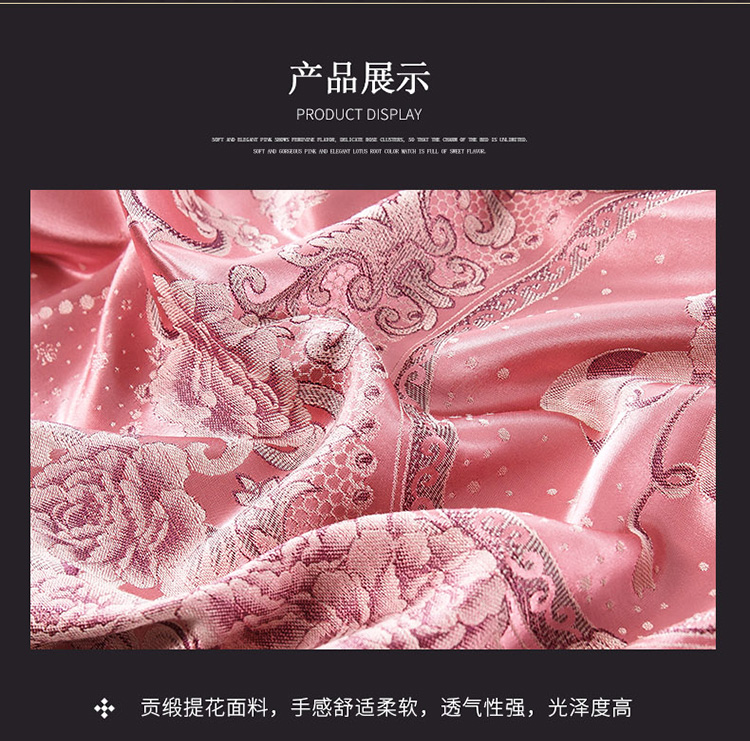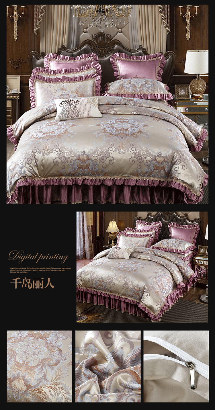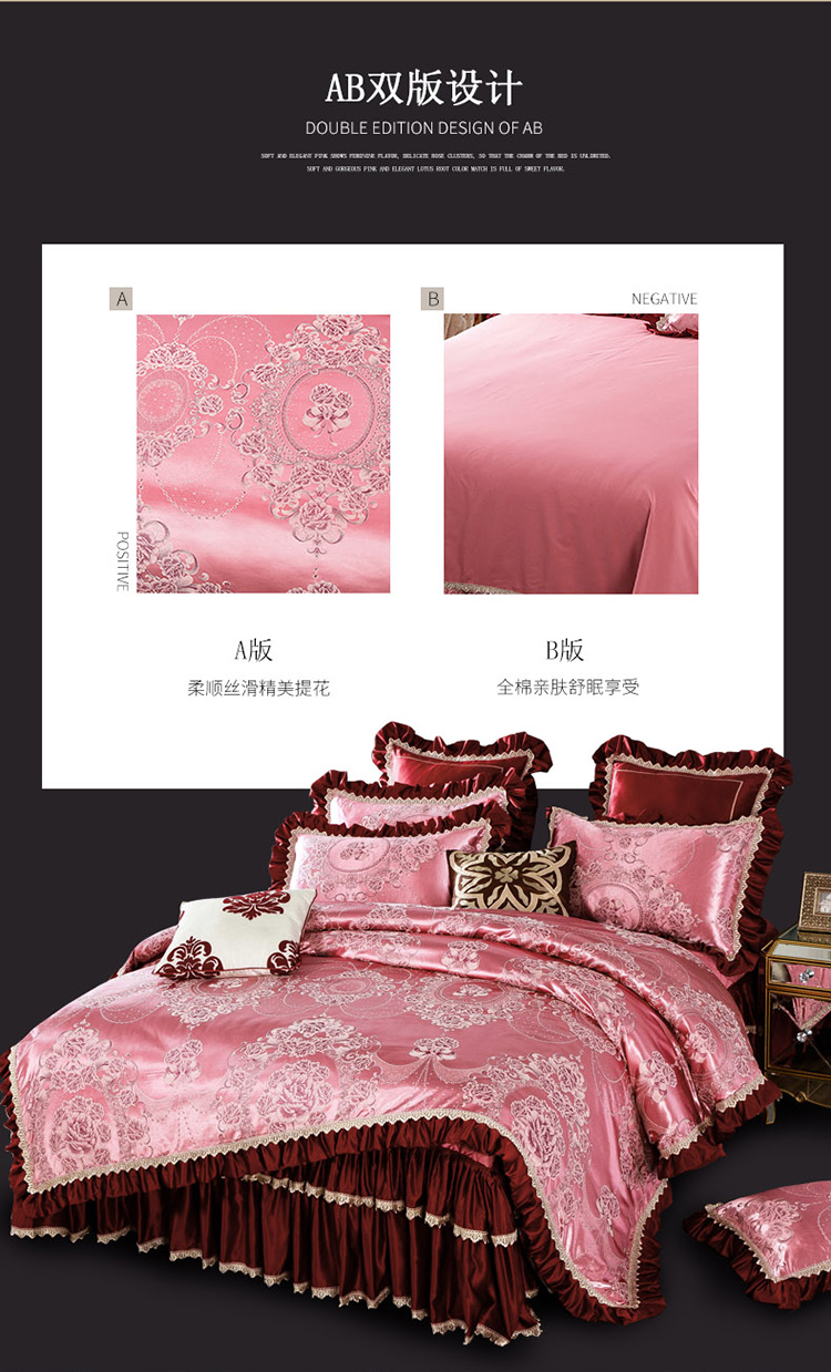兴美佳欧式提花贡缎双层花边夹棉床单床裙四件套玫瑰情缘