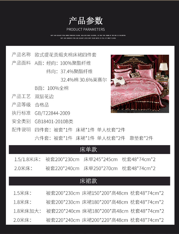 商品名称:兴美佳欧式提花贡缎双层花边夹棉床单床裙四件套玫瑰情缘
