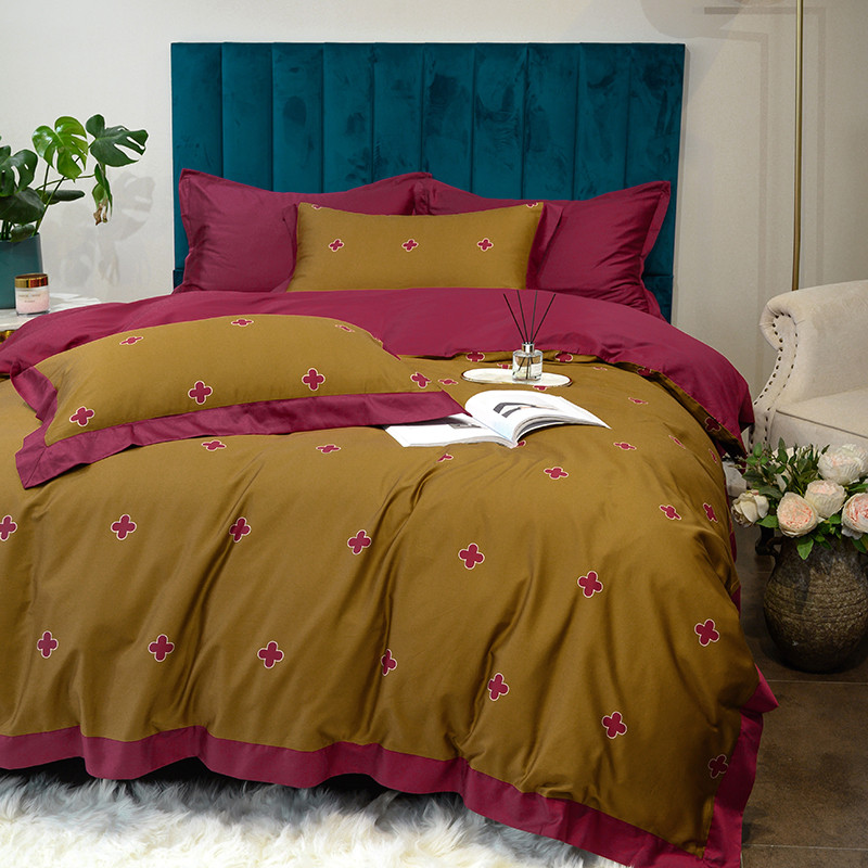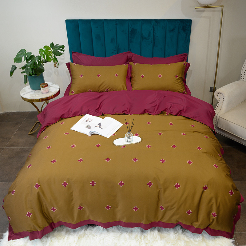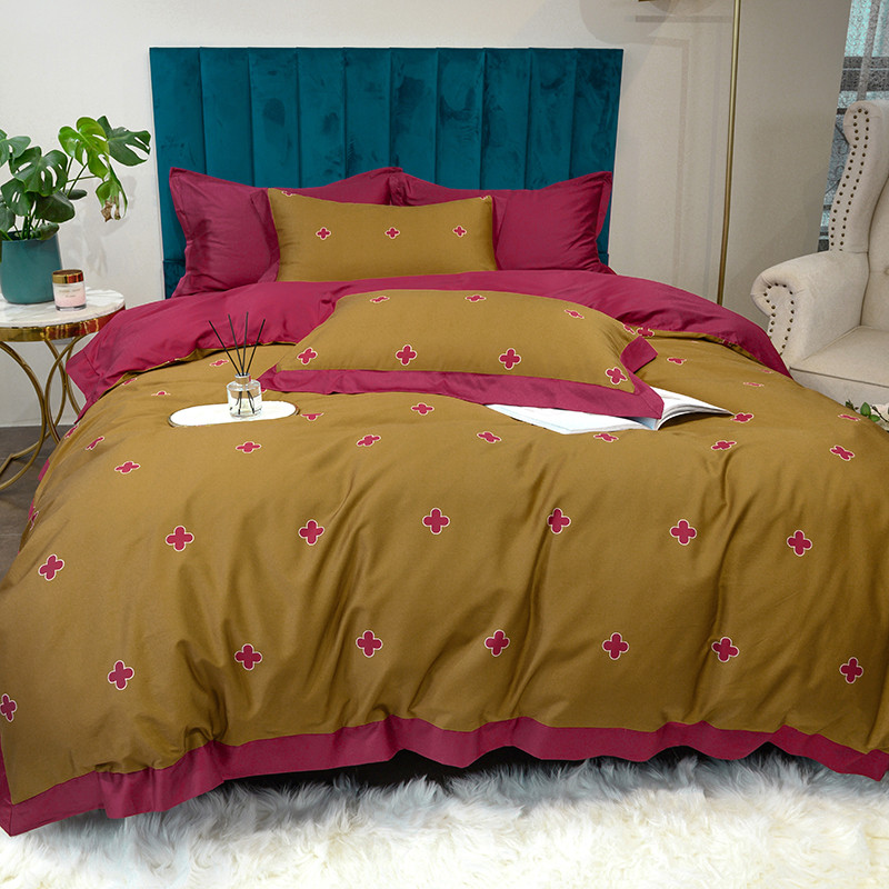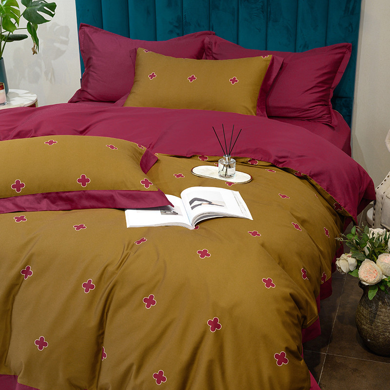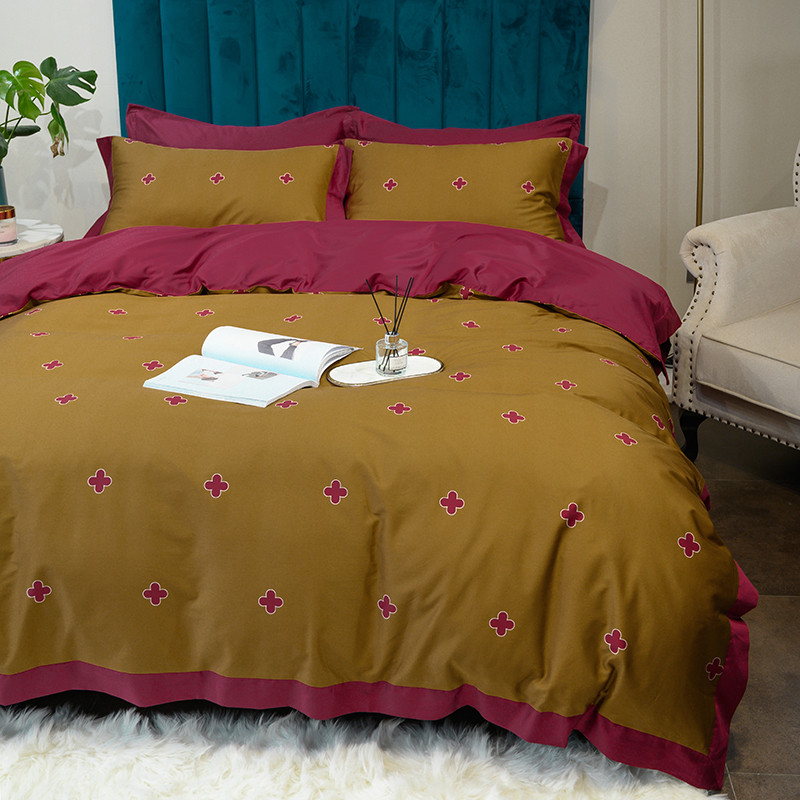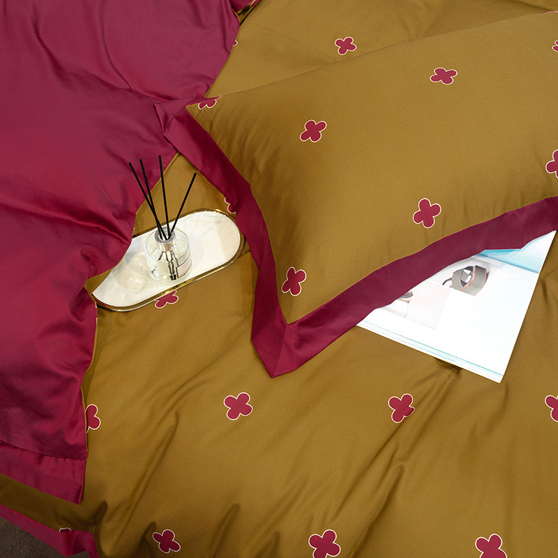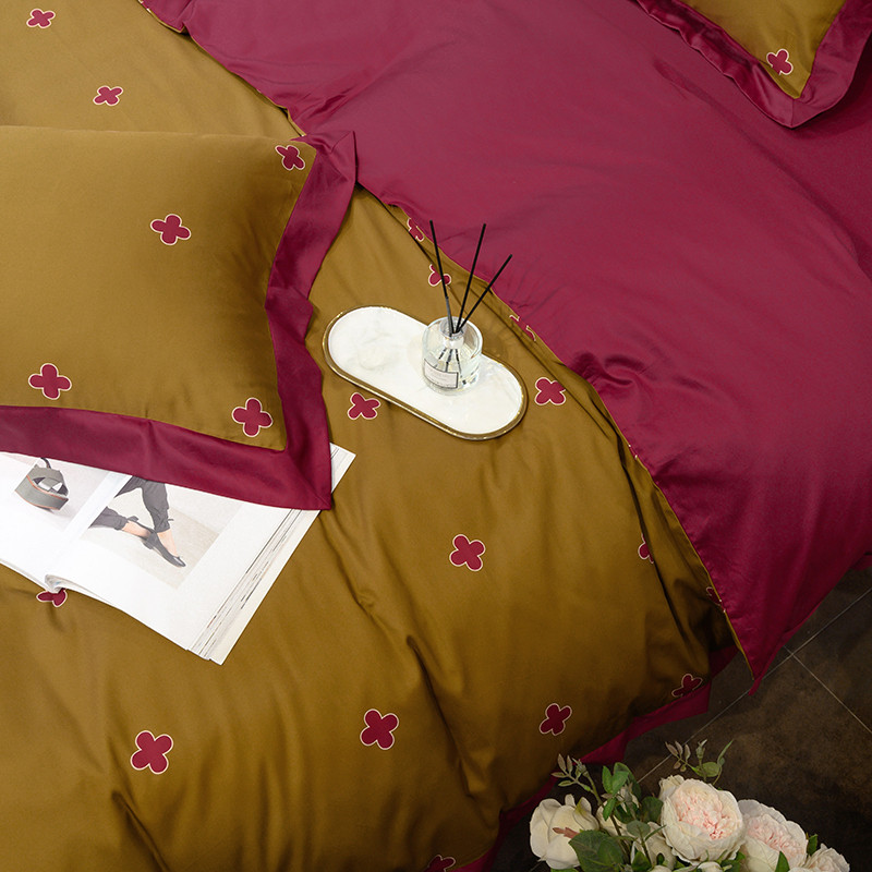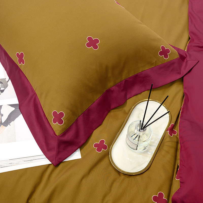 太古汇 60支贡缎长绒棉数码印花小边款四件套 四叶草查尔斯棕