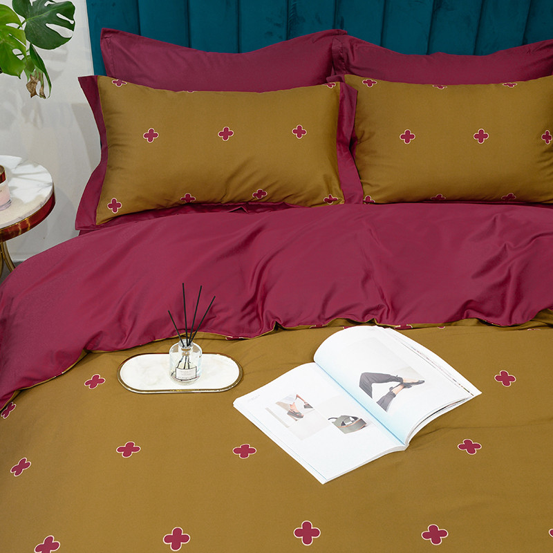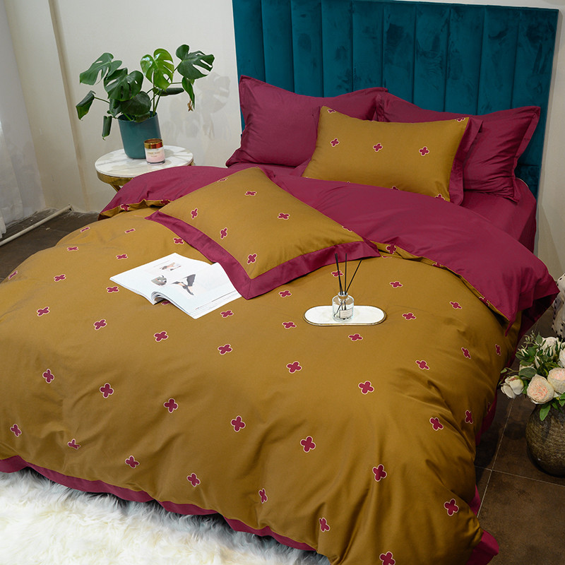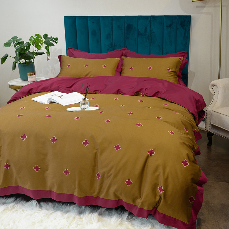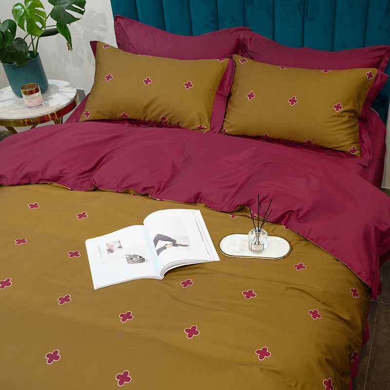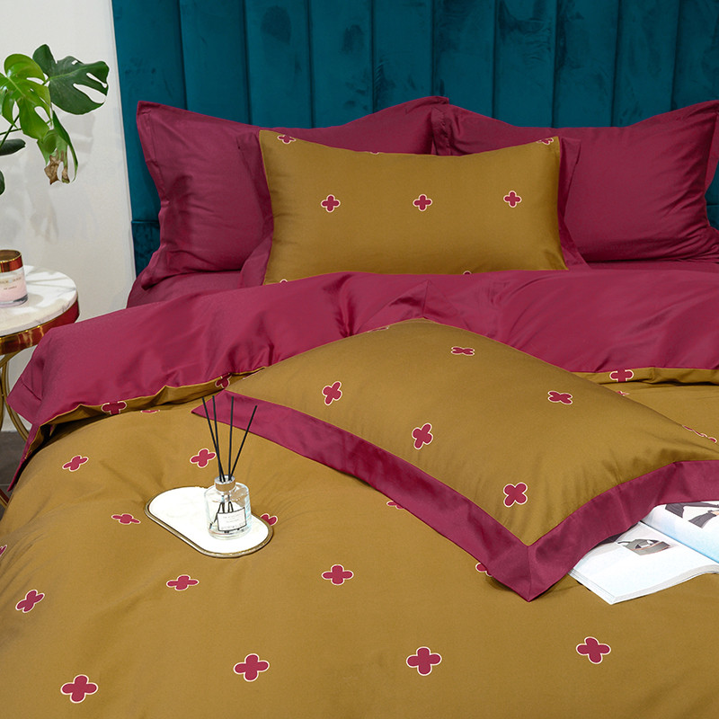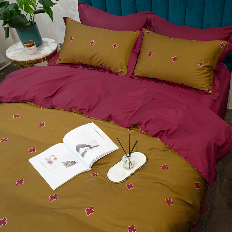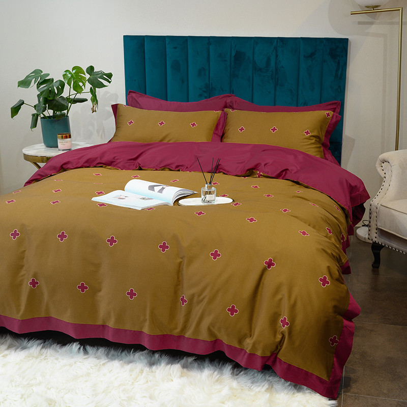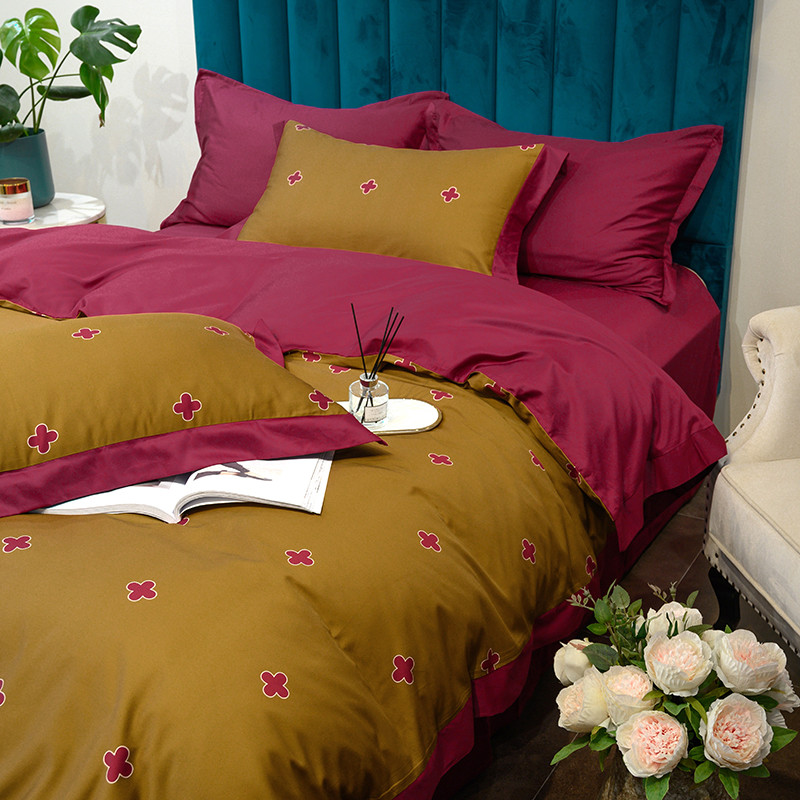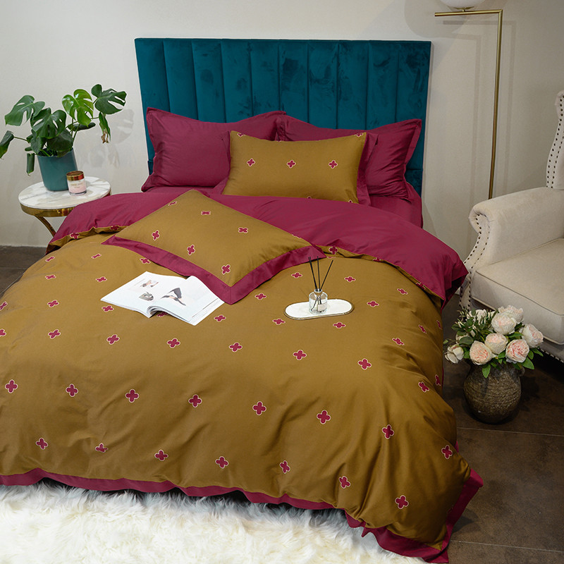 太古汇 60支贡缎长绒棉数码印花小边款四件套 四叶草查尔斯棕