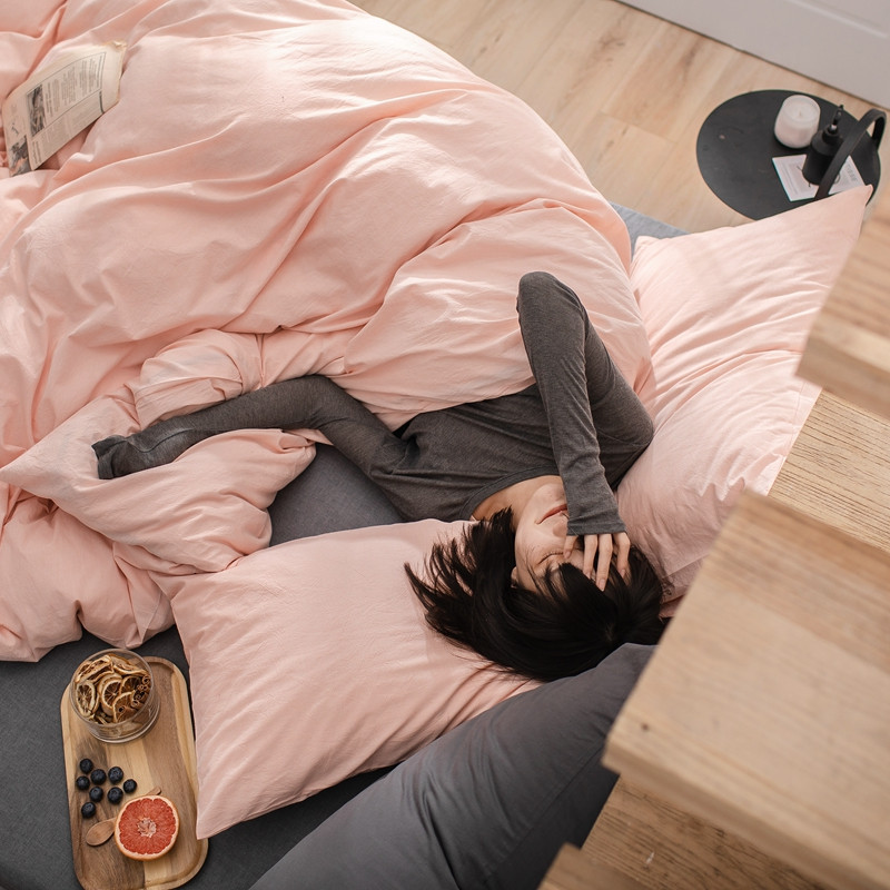 尚品本色 2023新款尚品本色水染水洗棉四件套 浅粉灰