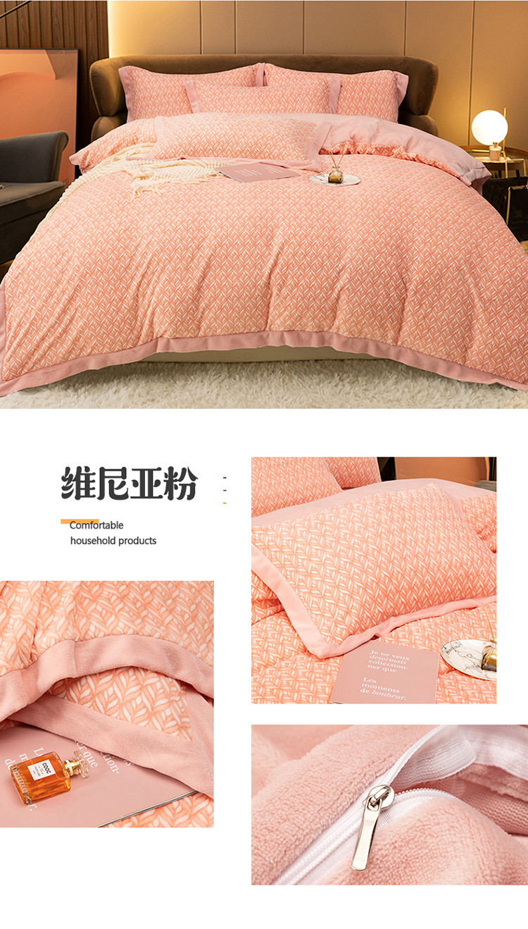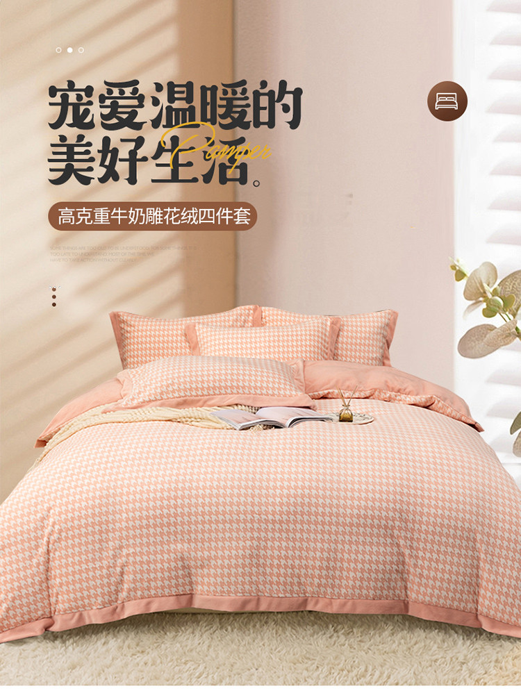 (总)娇逸 2021新款牛奶立体雕花绒印花四件套