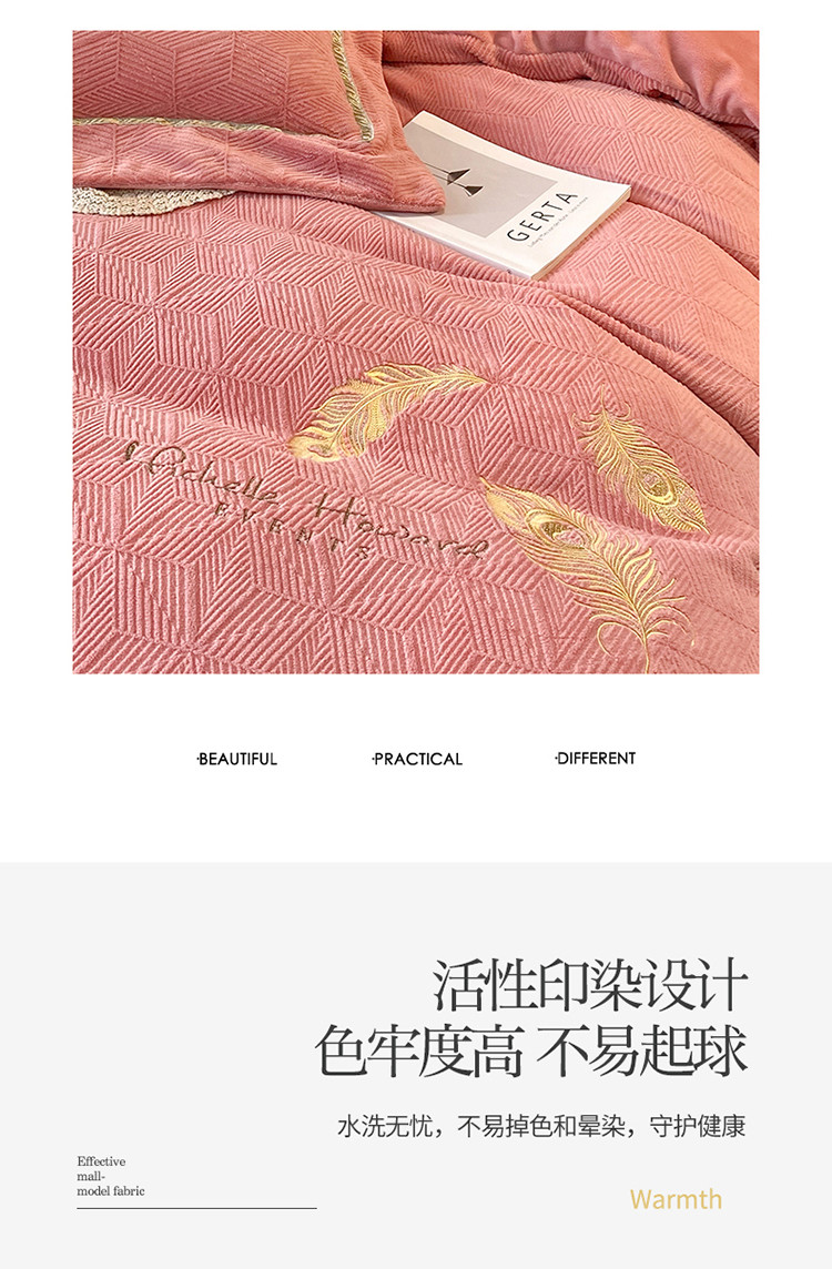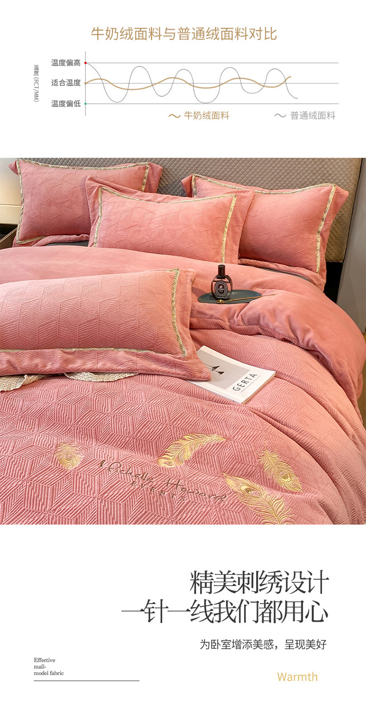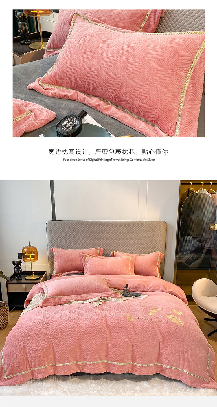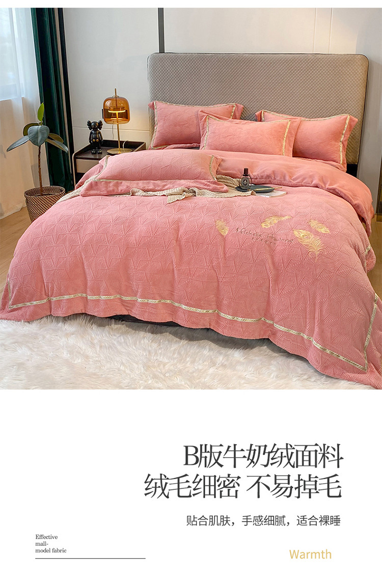 吾秀家居 2022新款羽毛刺绣雕花绒四件套 羽毛浅玉