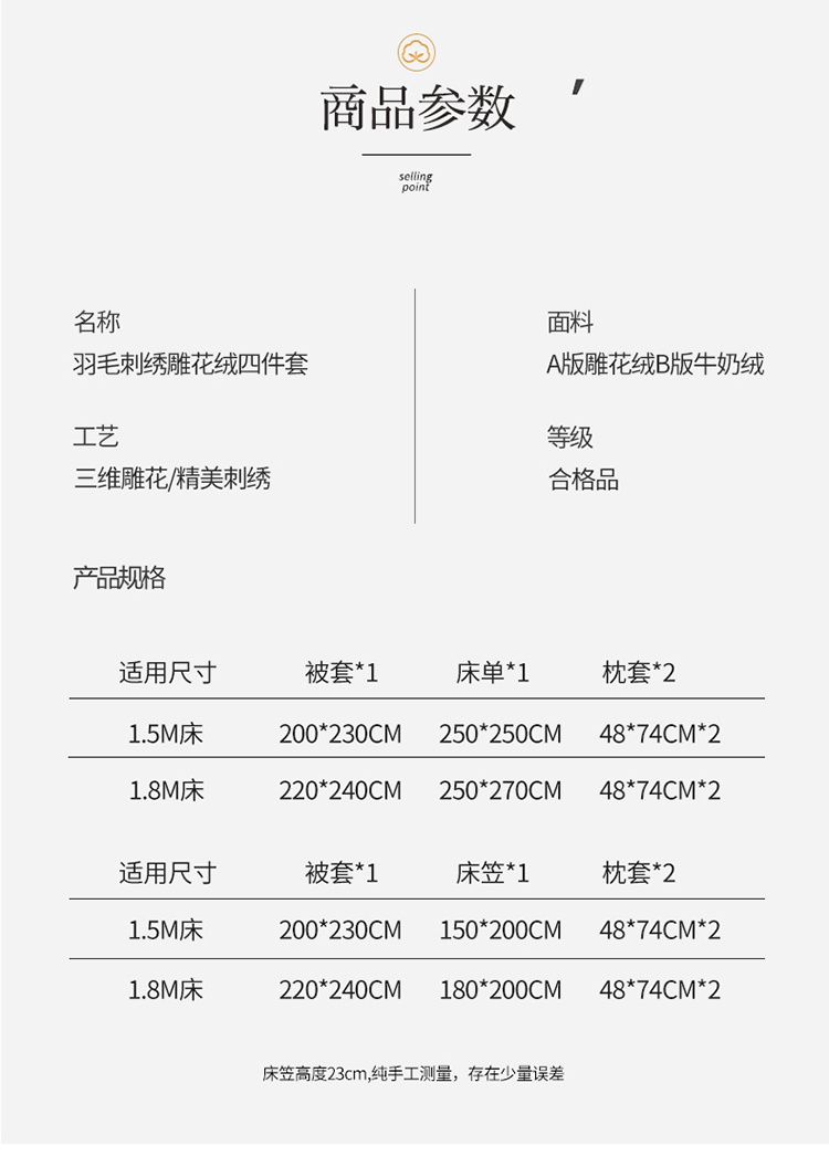 商品名称:吾秀家居 2022新款羽毛刺绣雕花绒四件套 羽毛浅玉