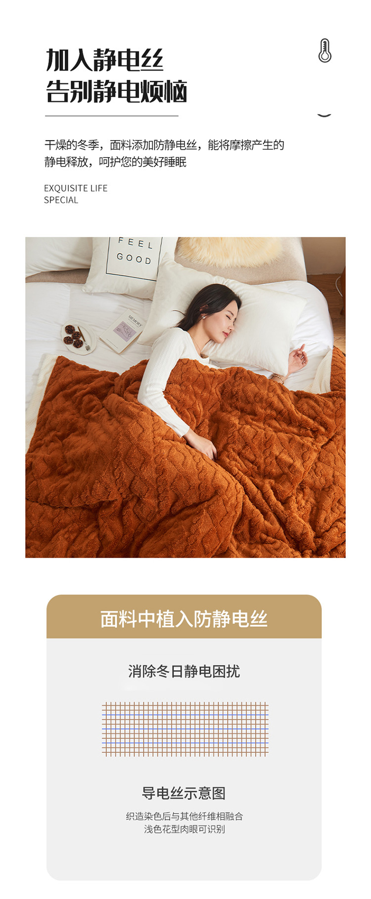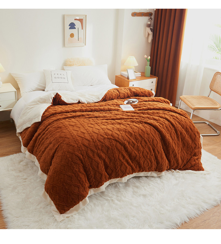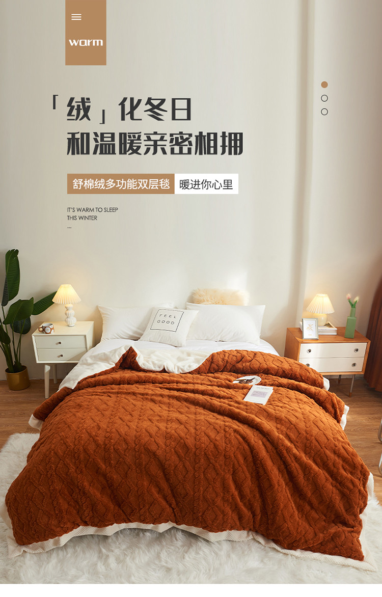 吾秀家居 2022新款贝贝绒双层舒棉毯 舒棉毯唐茶