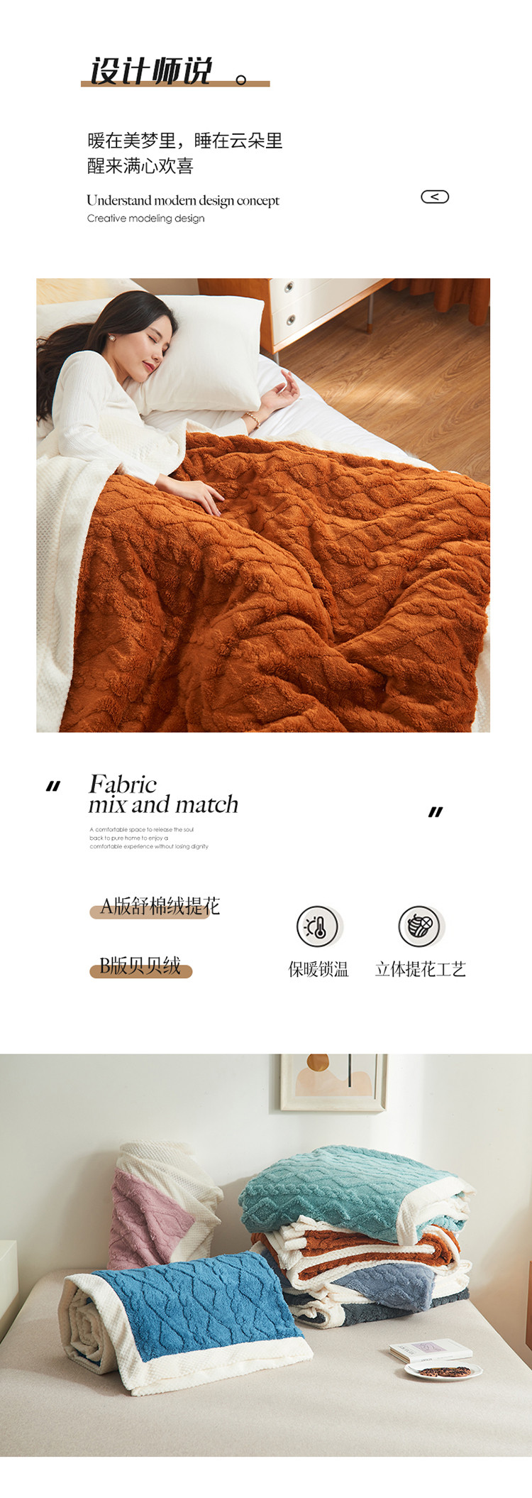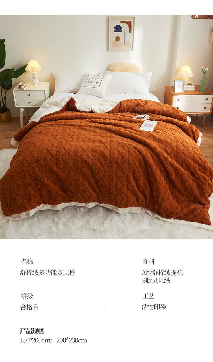 商品名称:吾秀家居 2022新款贝贝绒双层舒棉毯 舒棉毯唐茶