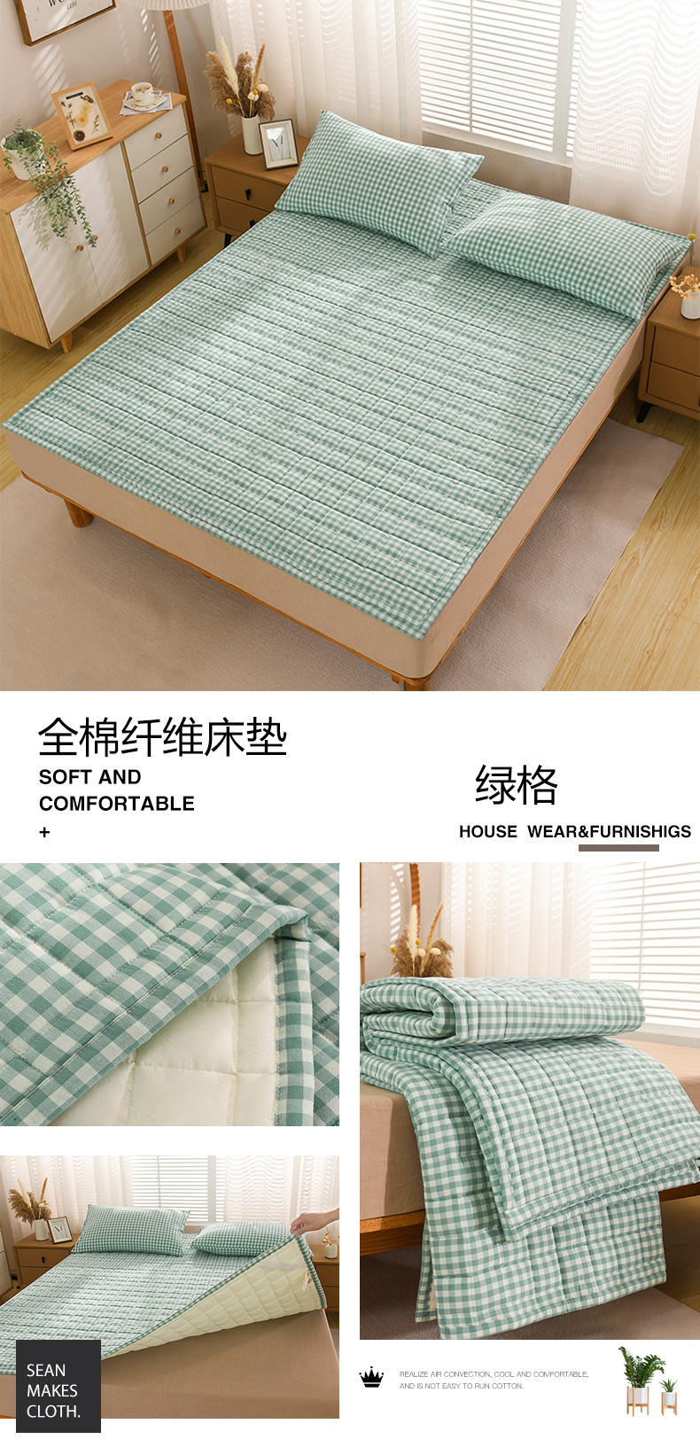 当前位置: 91家纺网 > 商品网购 > 床垫/床褥/床护垫 > 普通床垫 > 恋绒 2023新款A类全棉色织水洗棉床垫软床垫床褥垫子 水洗棉-绿格