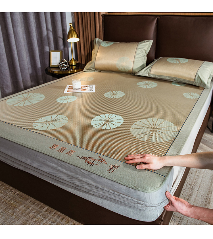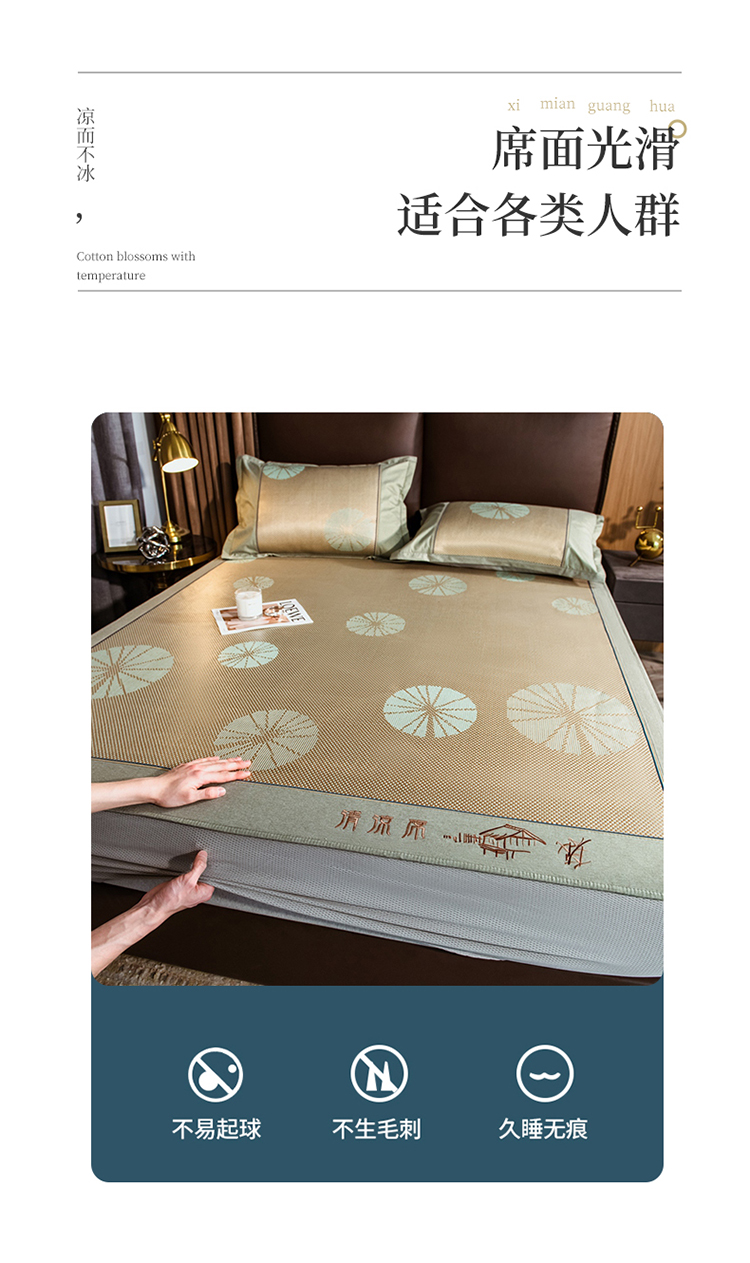 (总)全季家居 2025新款A类抗菌防螨幸运星系列冰藤席凉席席子,金咖 床席,水绿 床席,银灰 床席,金咖 床笠,水绿 床笠,银灰 床笠