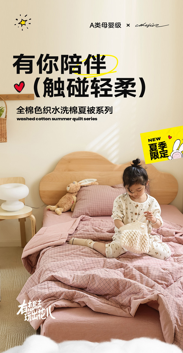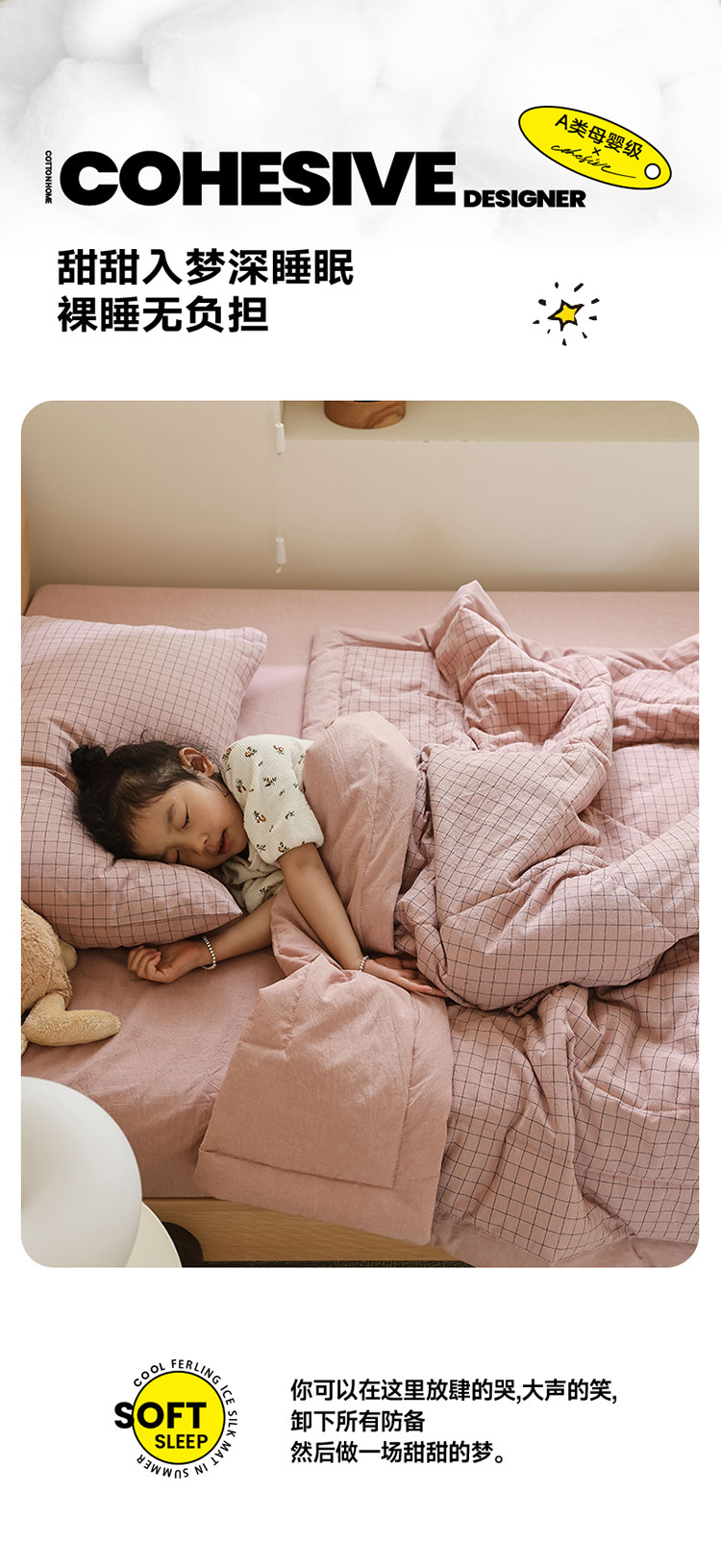 (总)寐眠 2023新款全棉色织水洗棉儿童夏被,粉大格,粉小格,灰白格,蓝大格,蓝小格,雾蓝格,小粉格