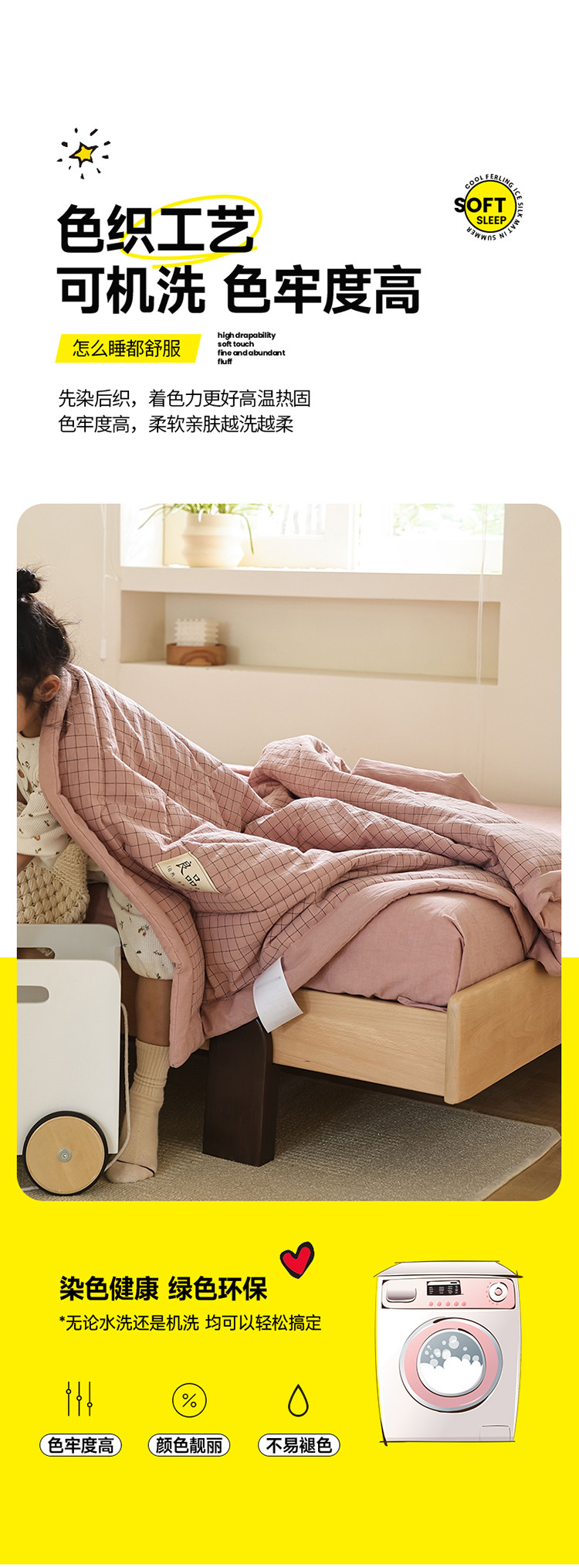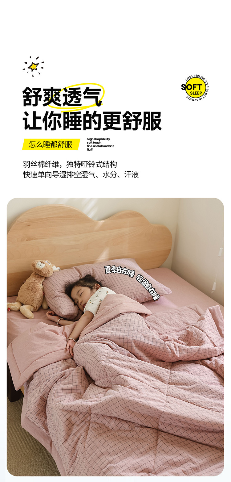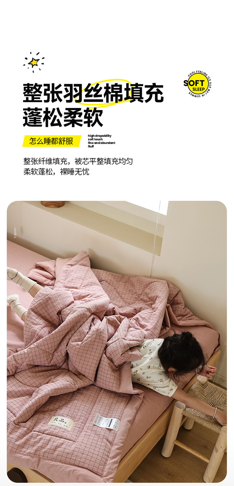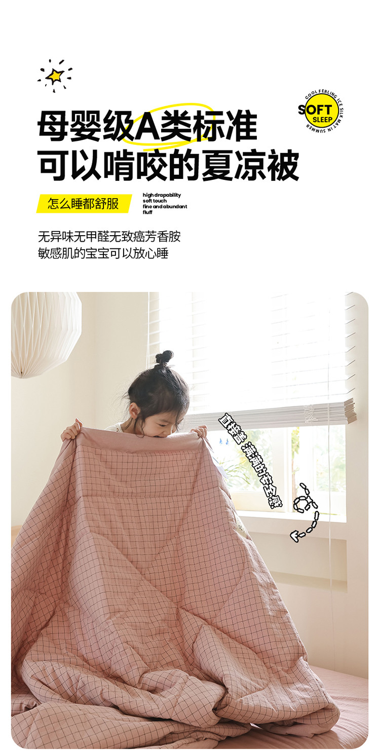 商品名称:寐眠 2023新款全棉色织水洗棉儿童夏被 小粉格