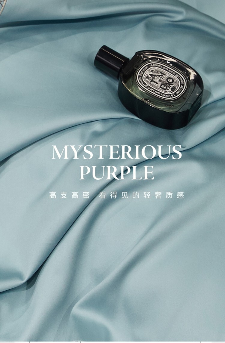 柔觉家纺 天丝刺绣贡缎提花全棉四件套,卡曼时尚-粉紫