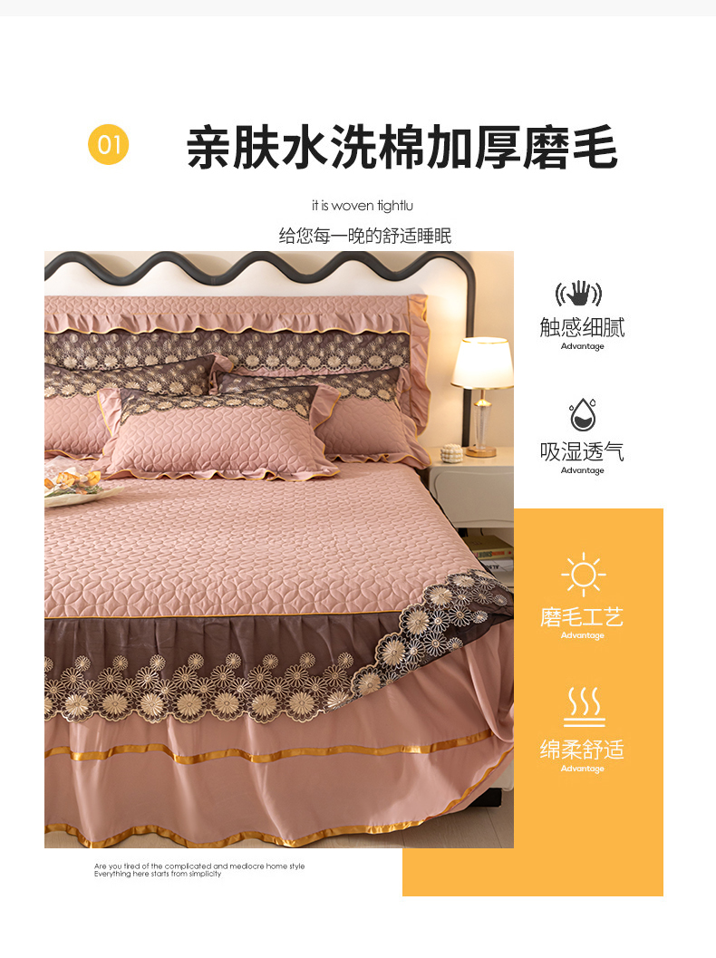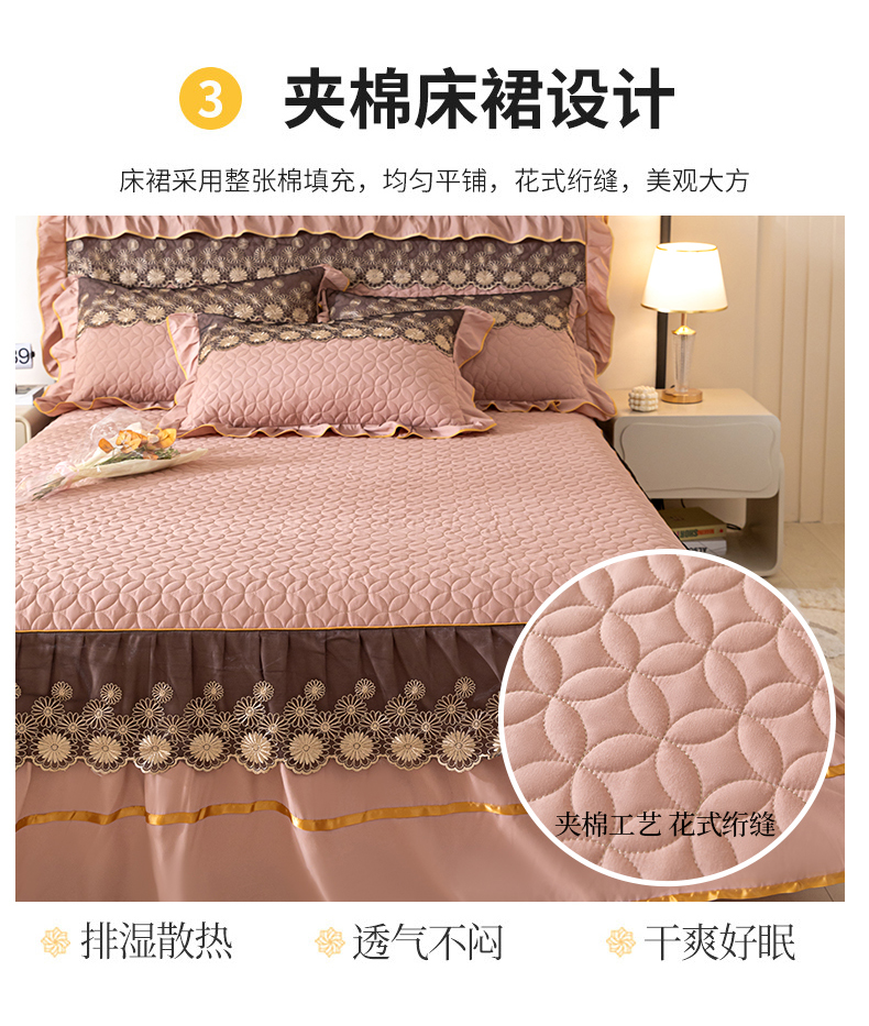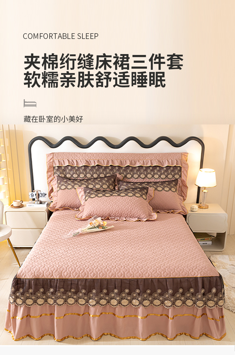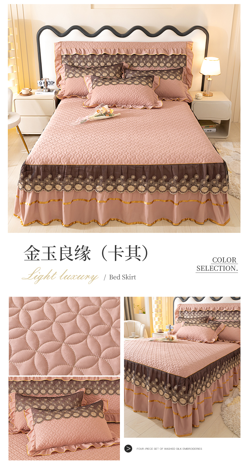 当前位置: 91家纺网 > 商品网购 > 床品套件 > 三件套 > 靓生活 2023新款夹棉绗缝床裙三件套-金玉良缘 卡其