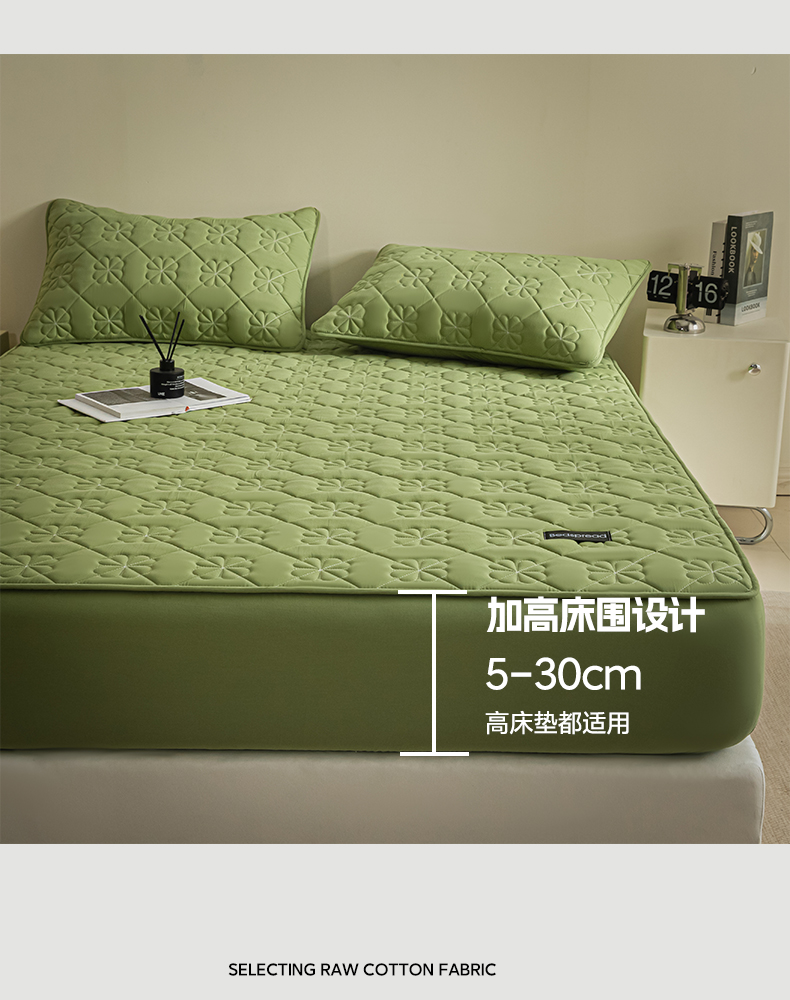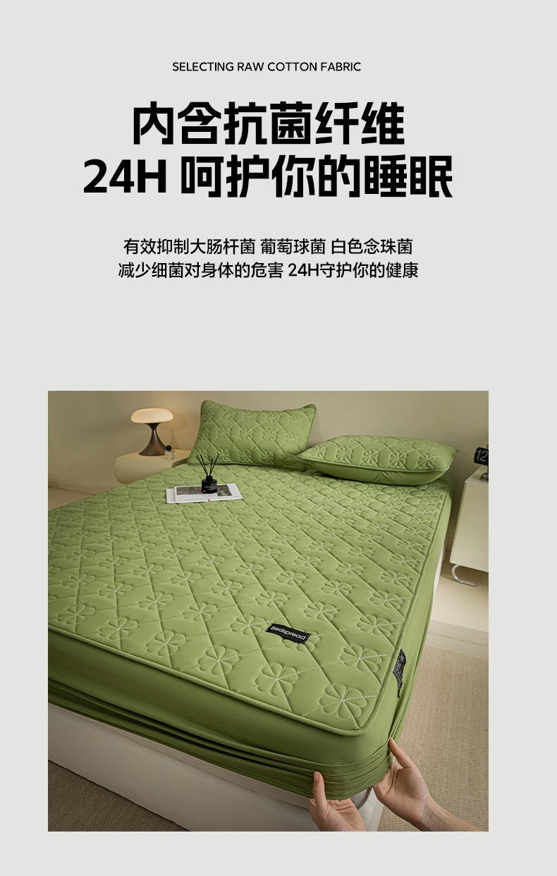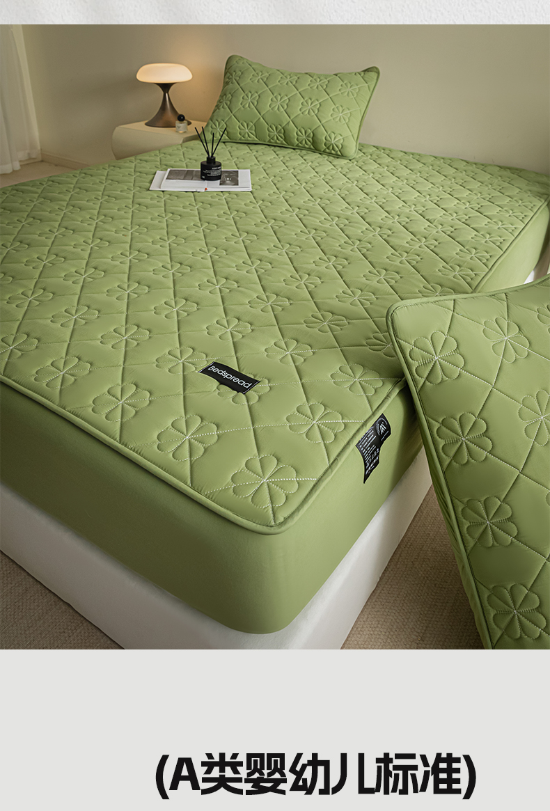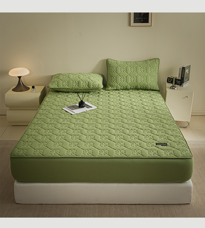芬晴家纺 2024新款A类全棉水洗棉抗菌床笠夹棉床笠奥兰 奥兰-豆绿