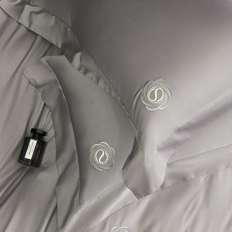 榻尚家居 2024新款80S长绒棉纯色绣花系列四件套--静谧系列 静谧-灰