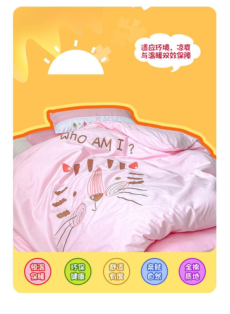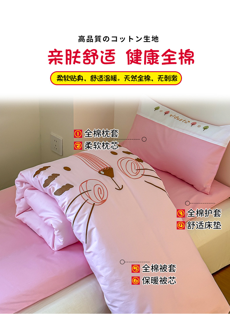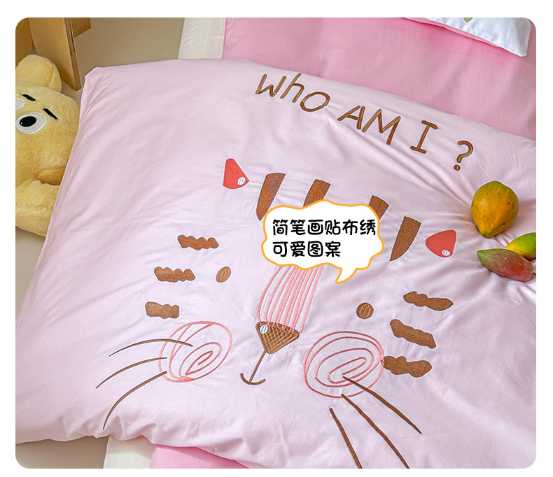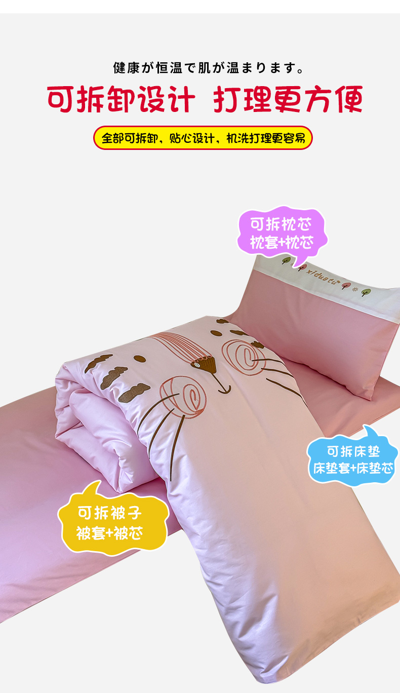 当前位置: 91家纺网 > 商品网购 > 床品套件 > 多件套 > 多件套 > 2024新款全棉小甜心纯棉绣花幼儿园被子三件套 粉色小猫咪凯特