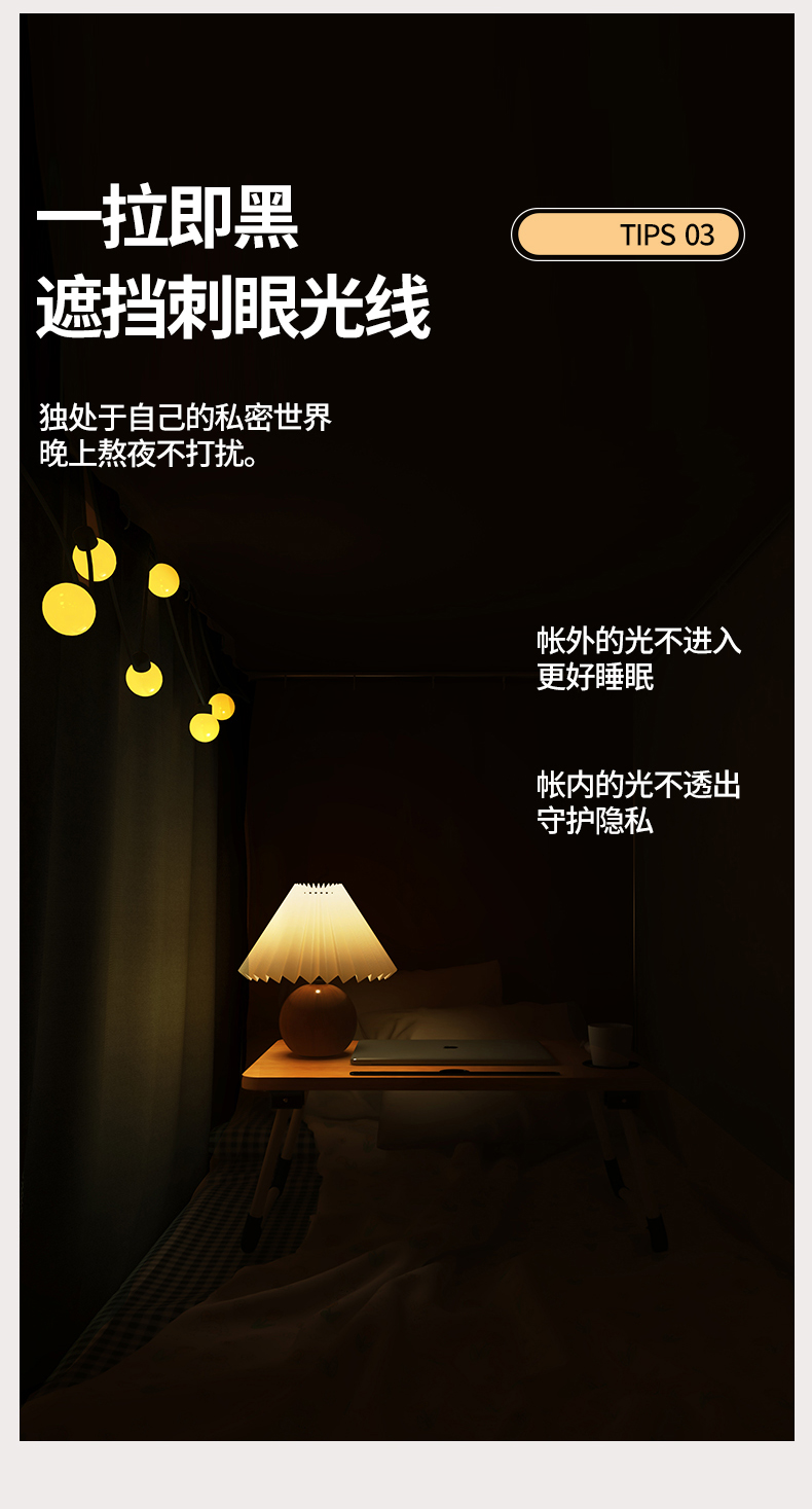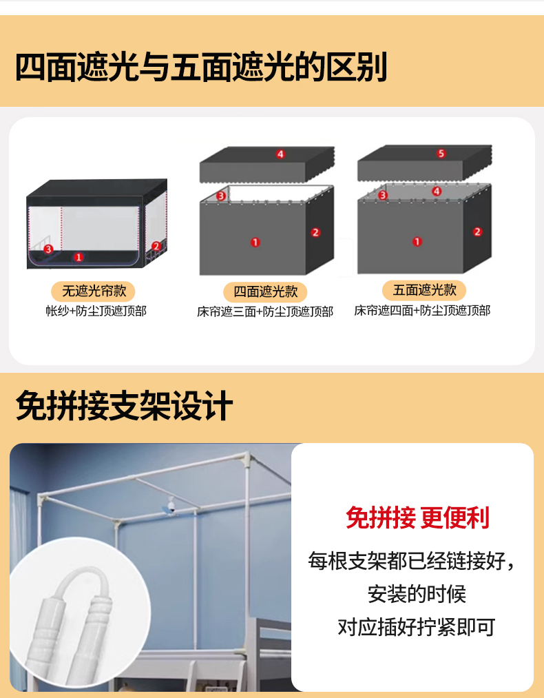 90*190*90cm(下铺单门)账纱+升级自连烤漆支架 +(三面帘遮光)