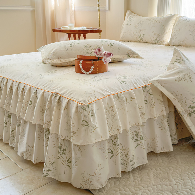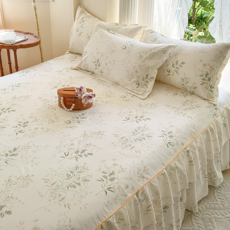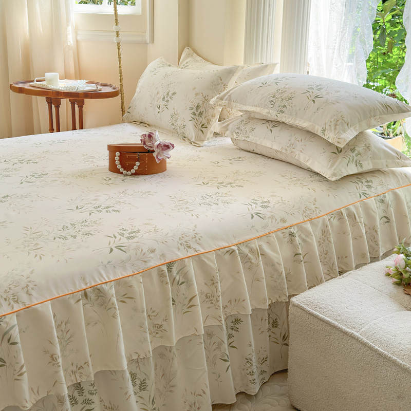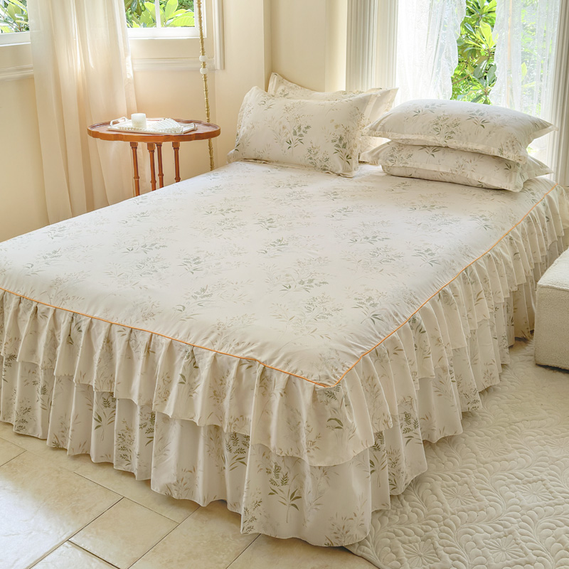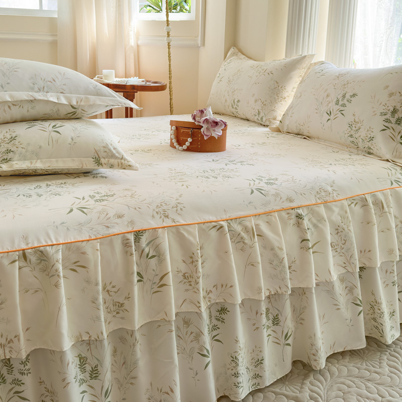 当前位置: 91家纺网 > 商品网购 > 床品套件 > 四件套 > 其它四件套 > 雨田家纺 2024新款亲肤棉印花床裙四件套 香草