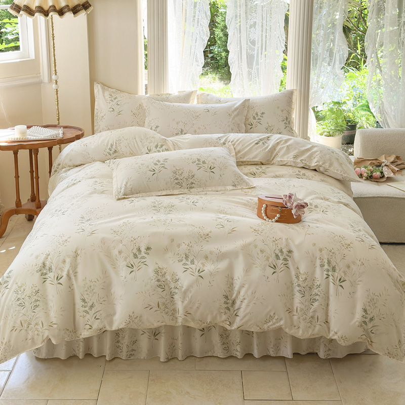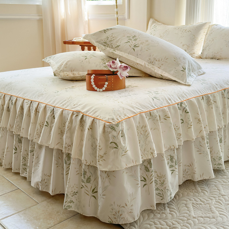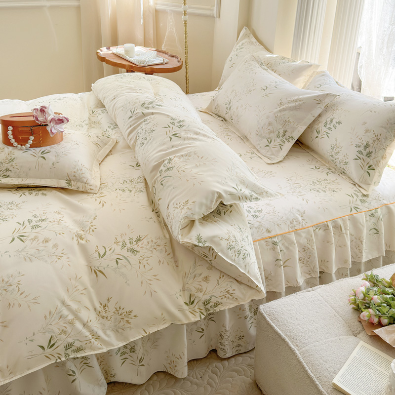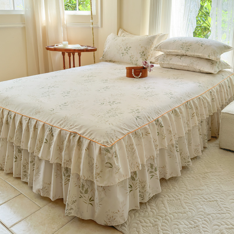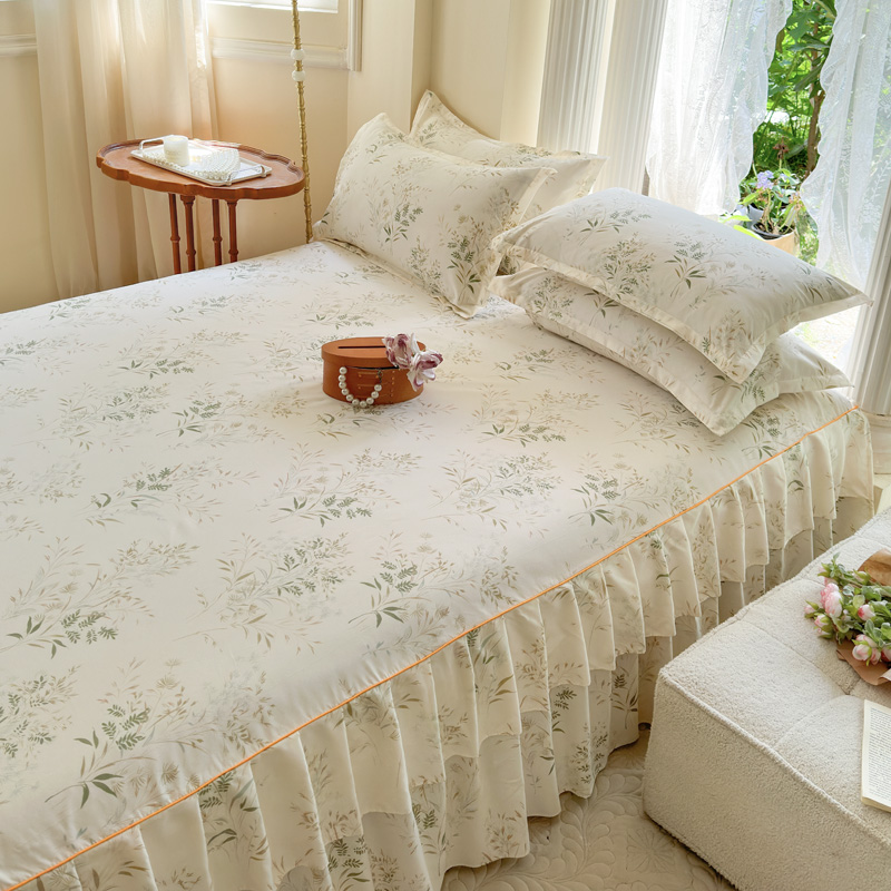 当前位置: 91家纺网 > 商品网购 > 床品套件 > 四件套 > 其它四件套 > 雨田家纺 2024新款亲肤棉印花床裙四件套 香草