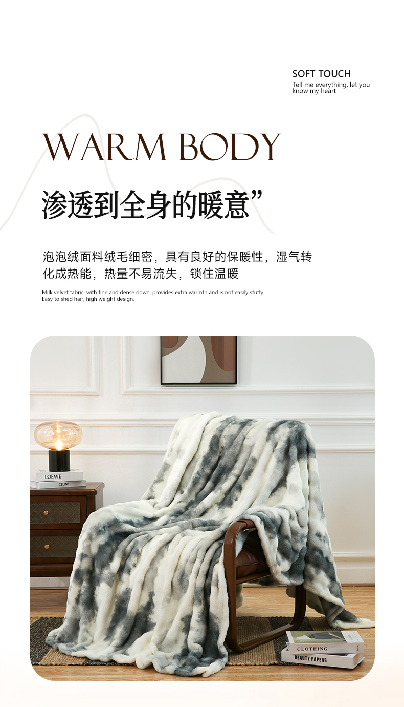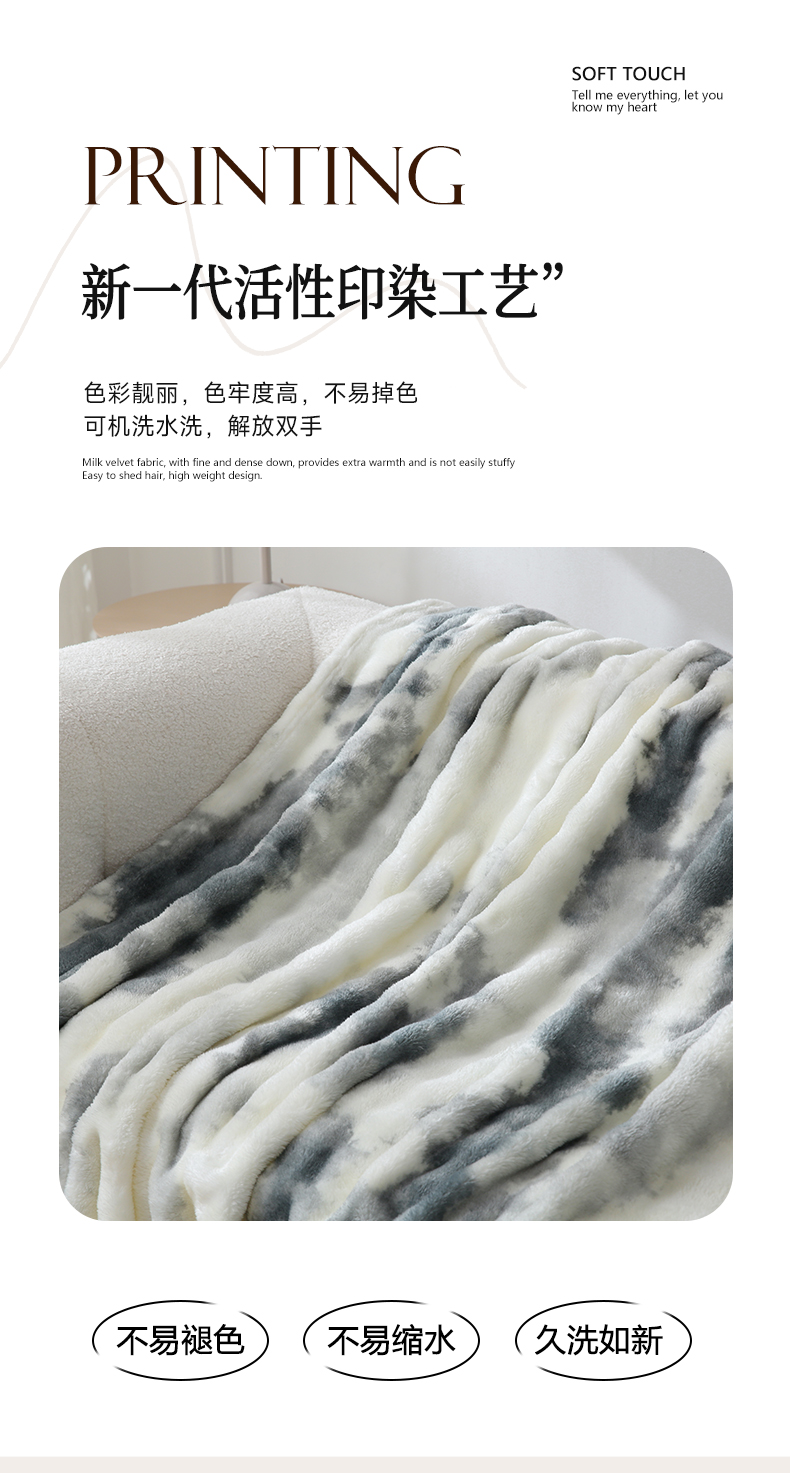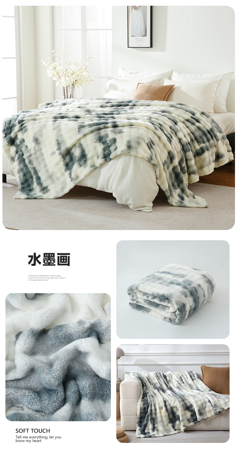 商品名称:巴木赫 2024新款300克印花泡泡毛毯毯子 水墨画