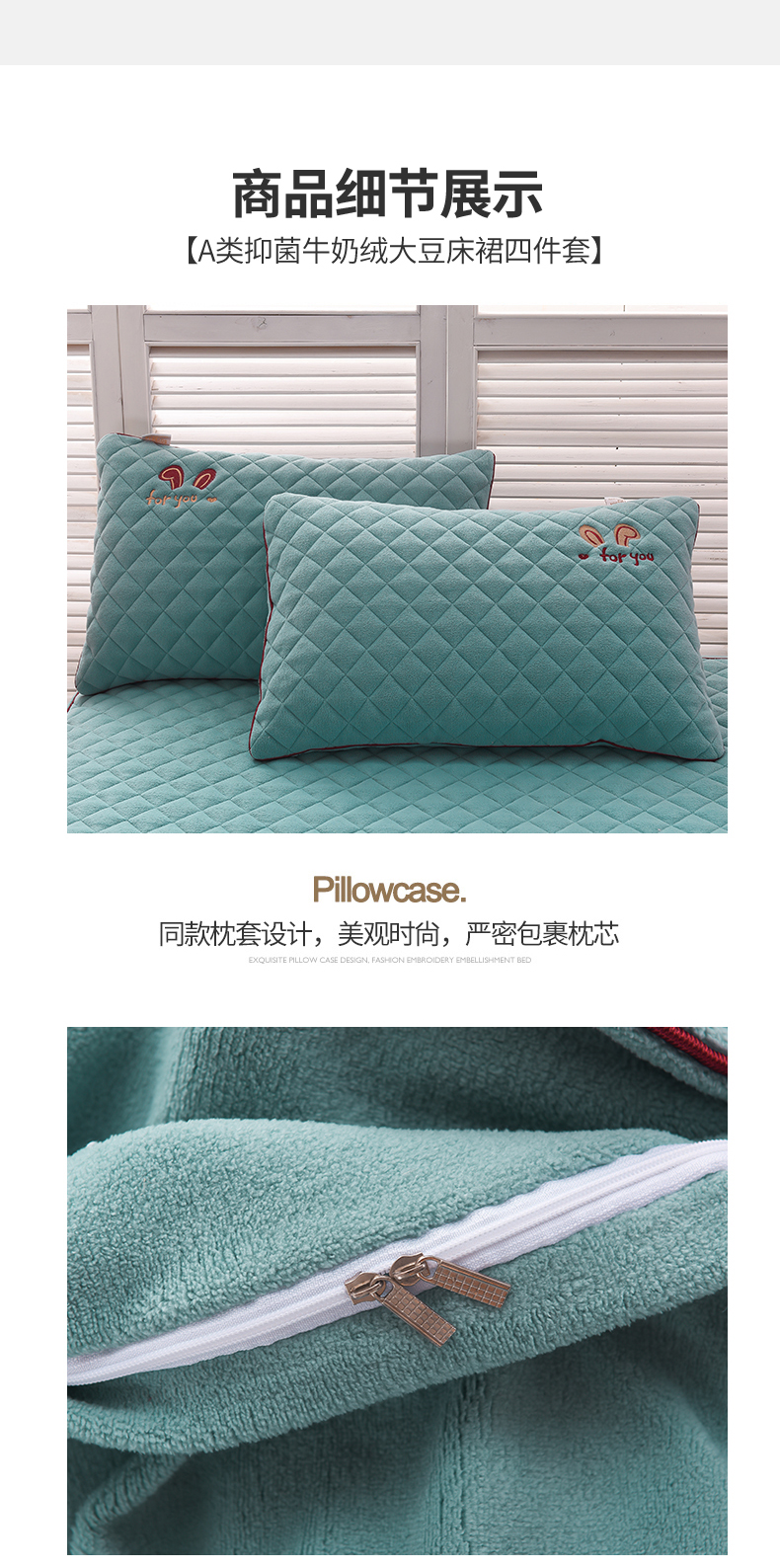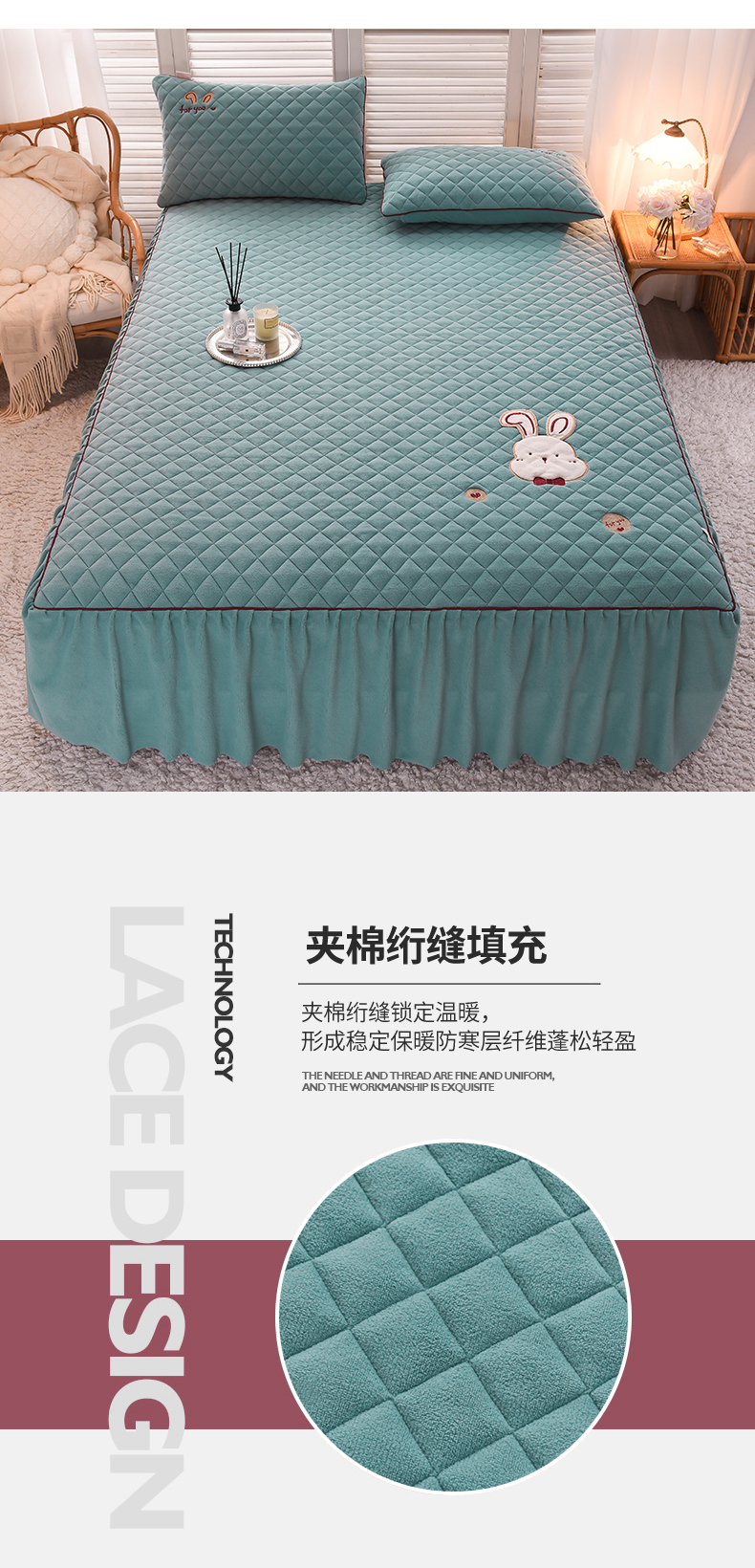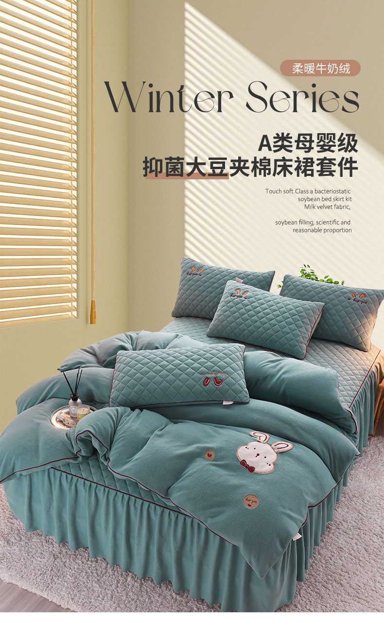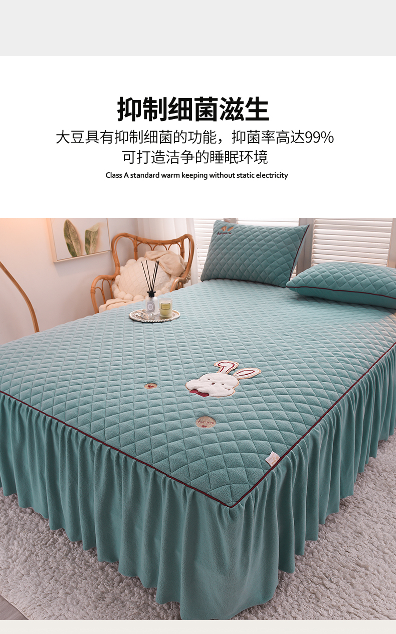 当前位置: 91家纺网 > 商品网购 > 床品套件 > 四件套 > 牛奶绒四件套 > 好眠好梦家纺 2024新款叮当兔牛奶绒绣花床裙款四件套 雾兰