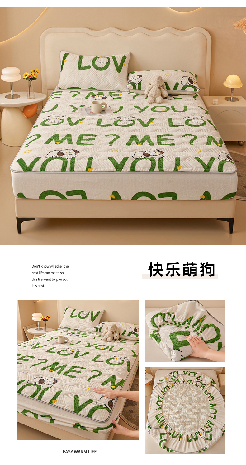 • 91家纺网 家纺一手货源 找家纺 湘之帛  2024新款牛奶绒印花夹棉床笠 快乐萌狗