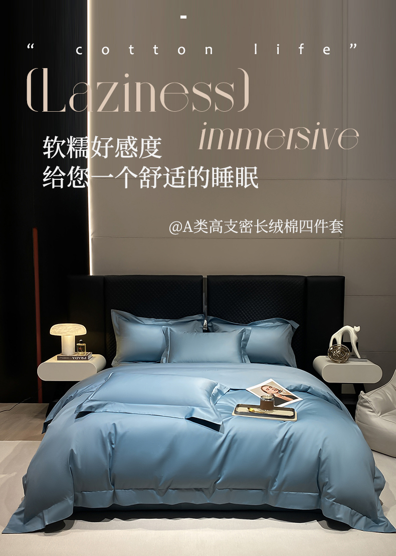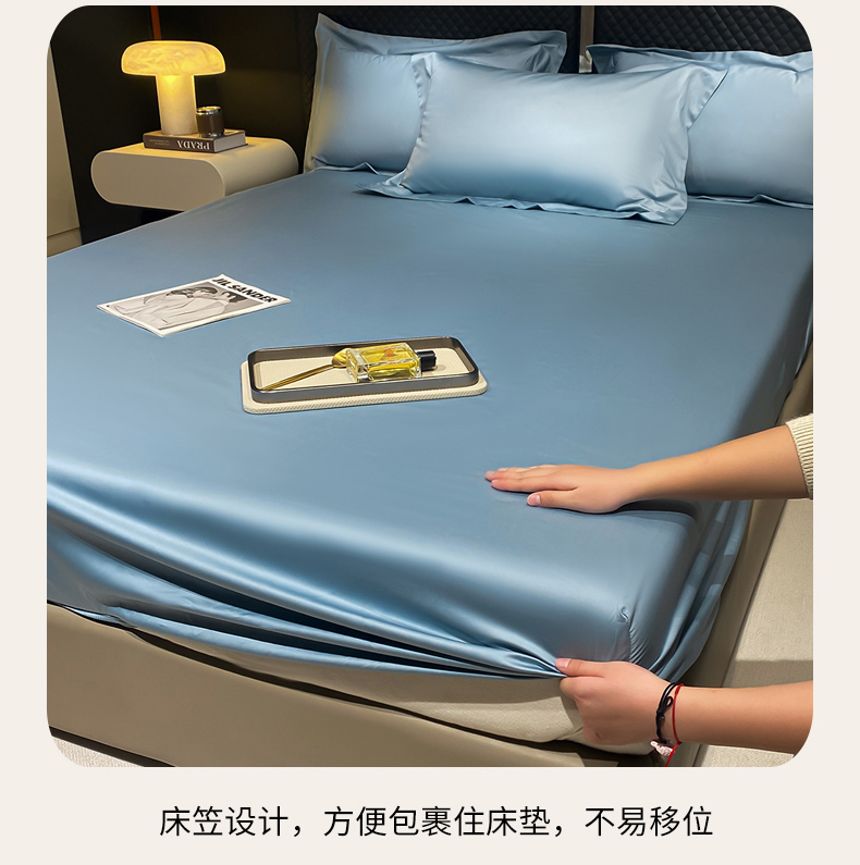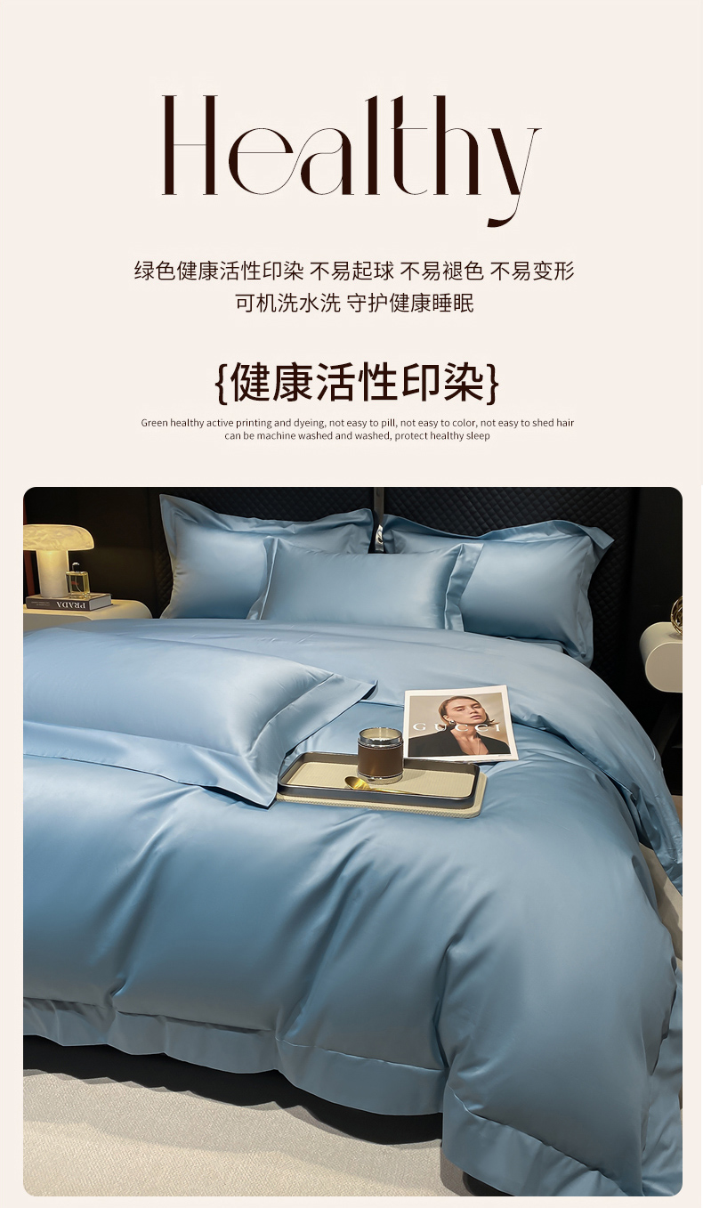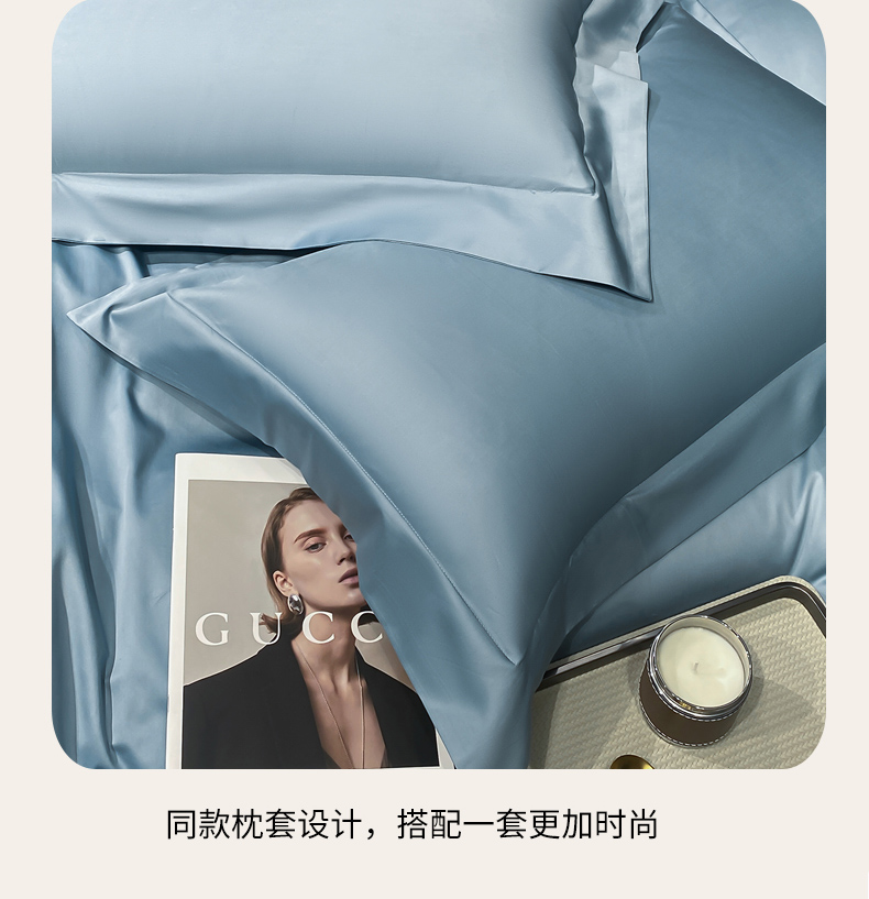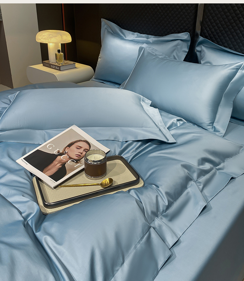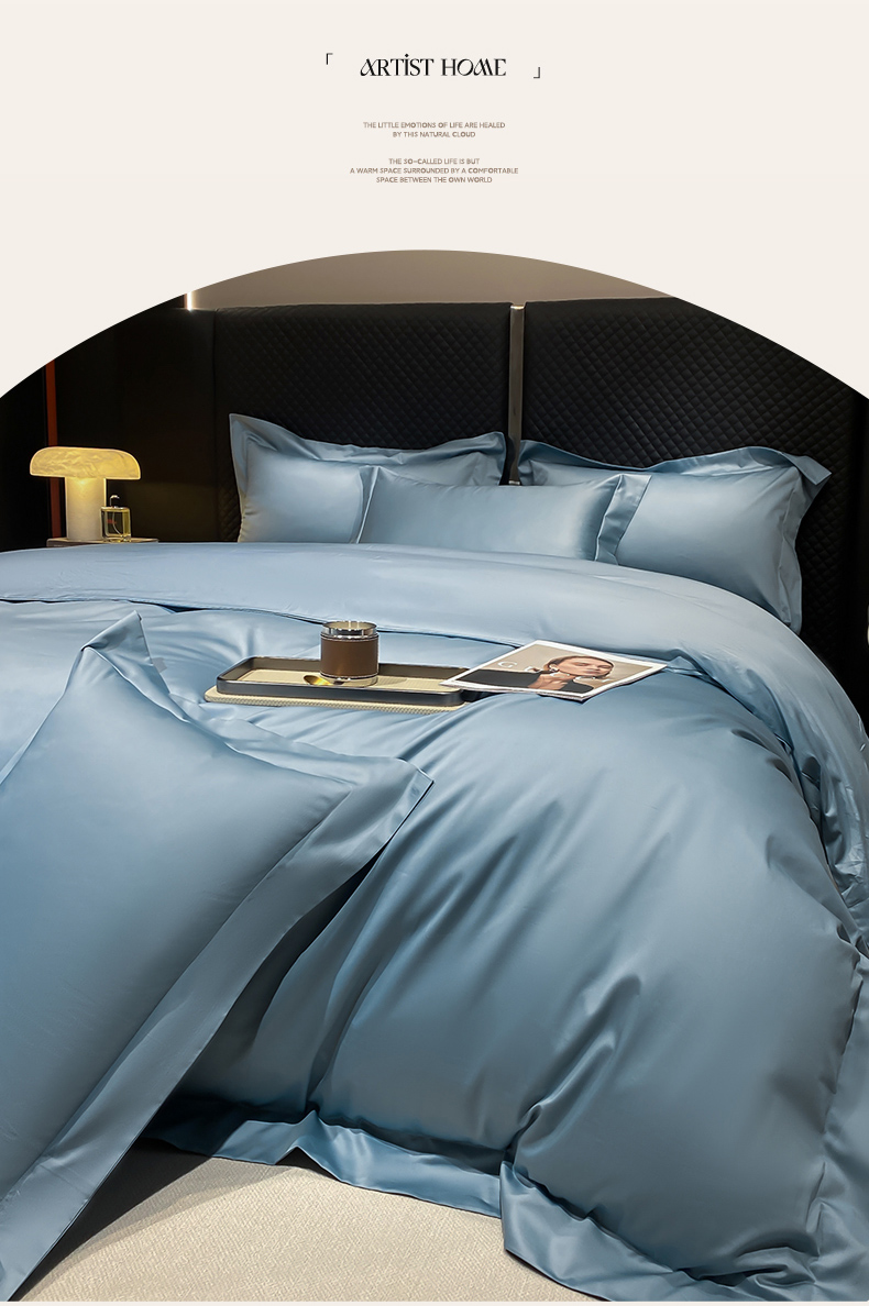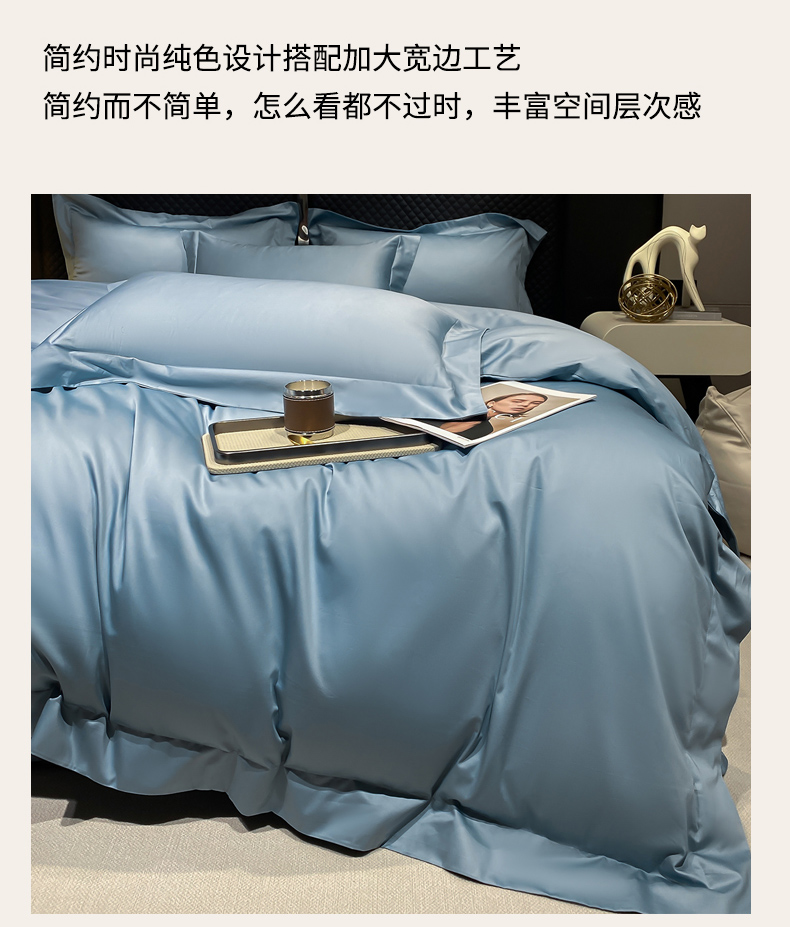 星蕴家纺 2025新款纯色澳棉长绒棉摩卡系列四件套 摩卡宾利蓝