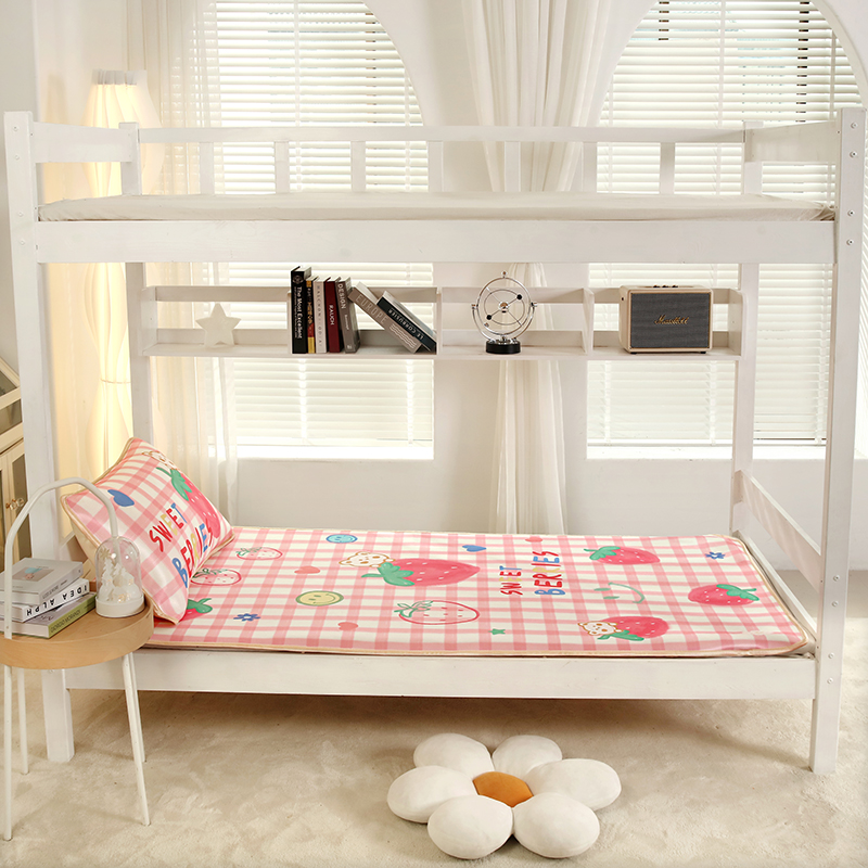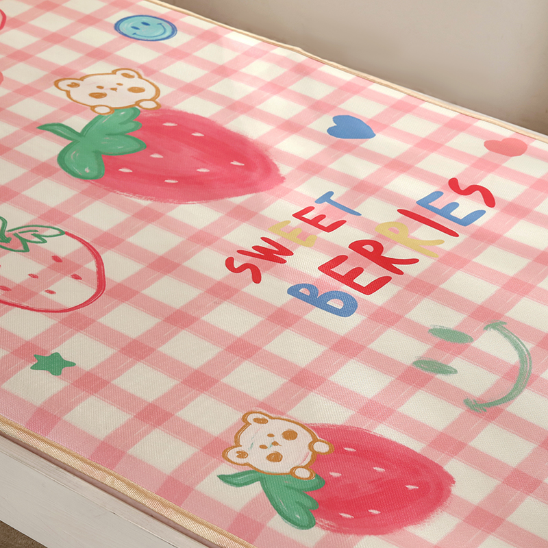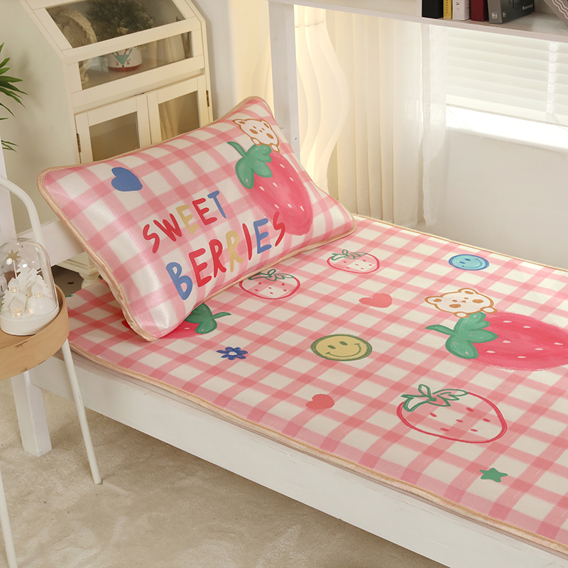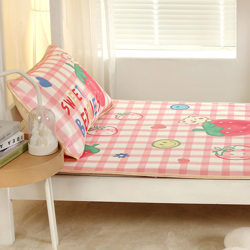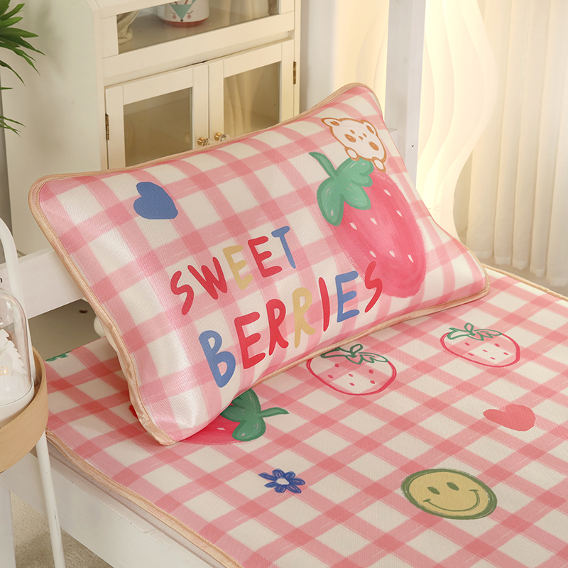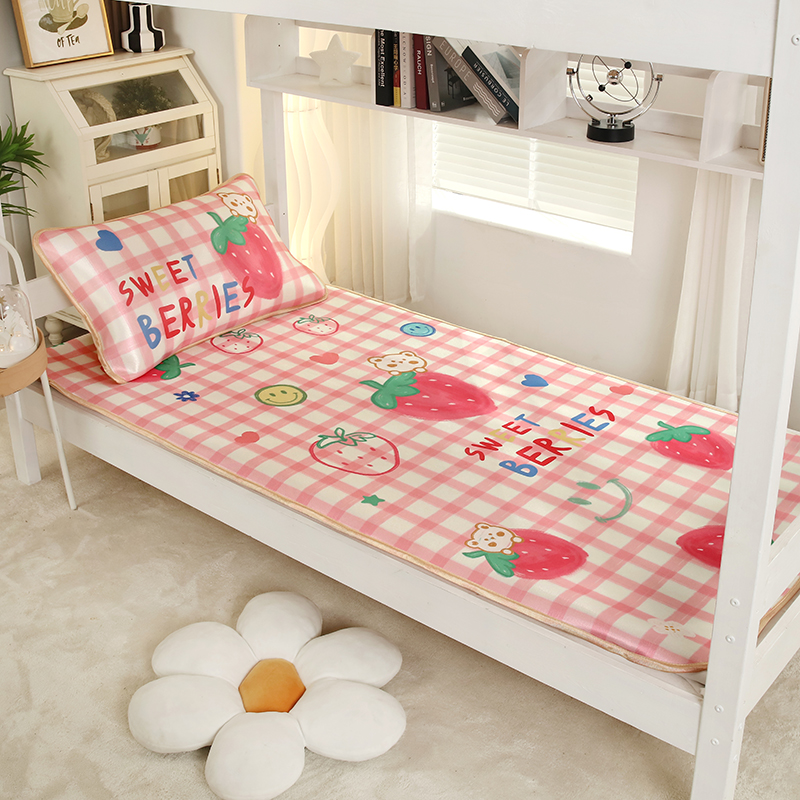 沁童儿童用品店 2025新款学生宿舍牛奶冰丝凉席两件套 小熊草莓