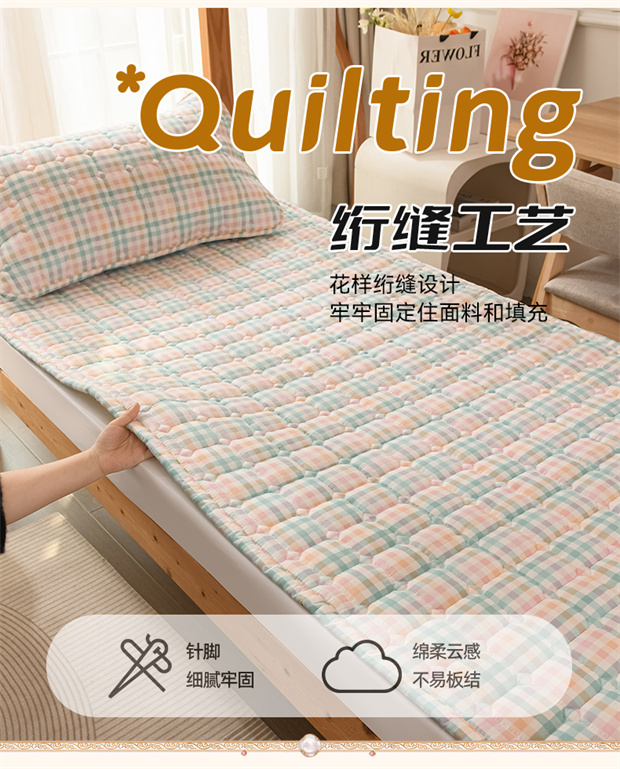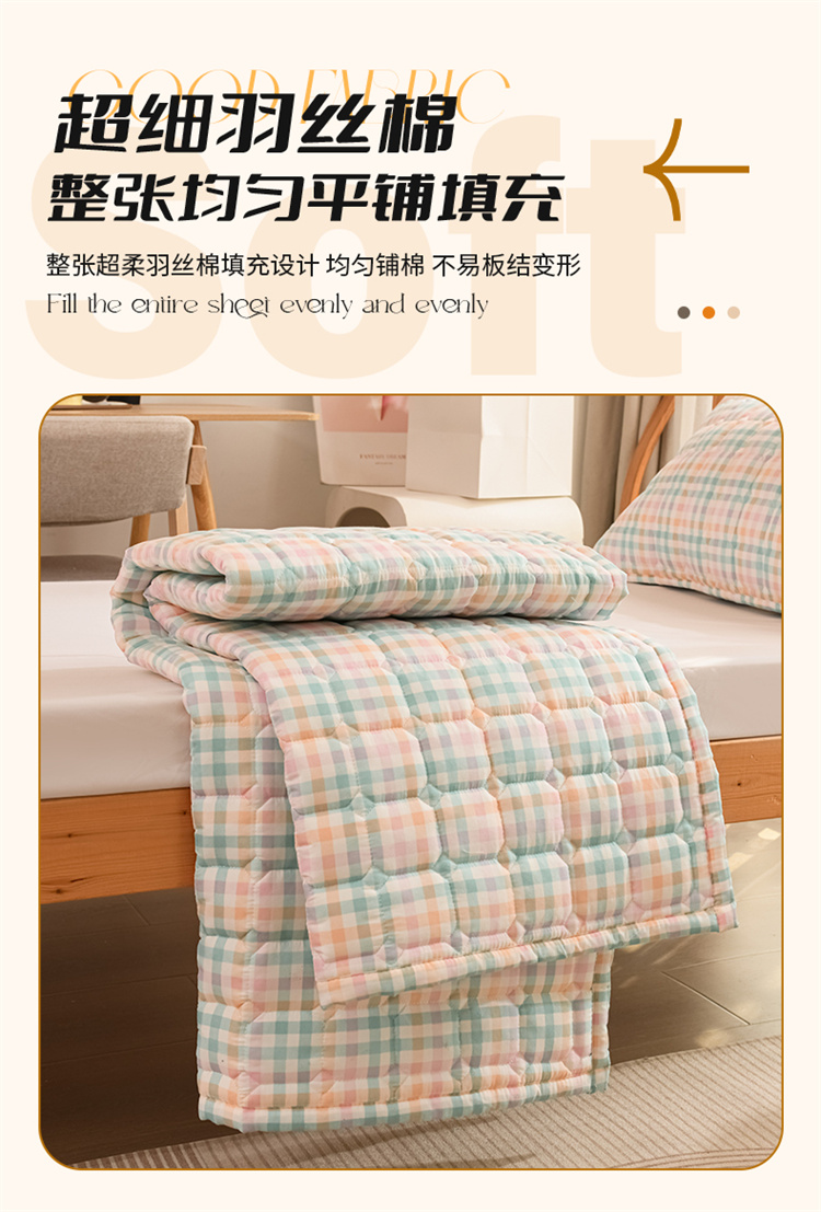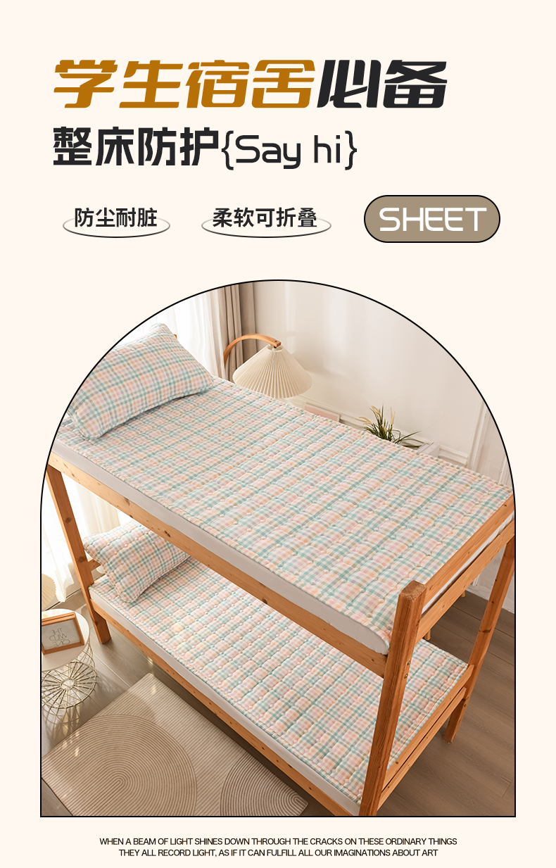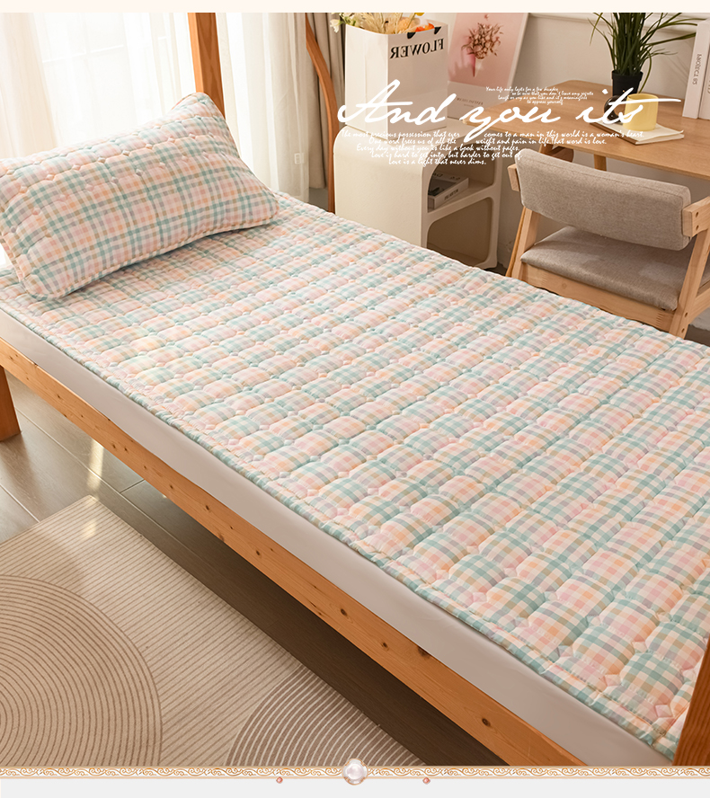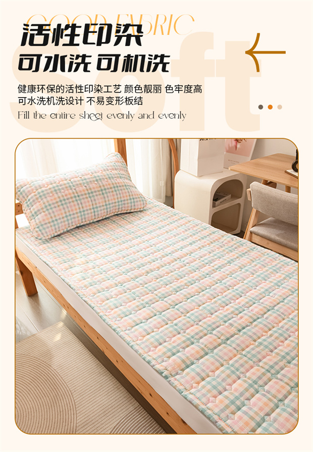 恋绒家纺 无印风高低床学生床褥水洗棉宿舍上下铺软床垫 粉蓝格