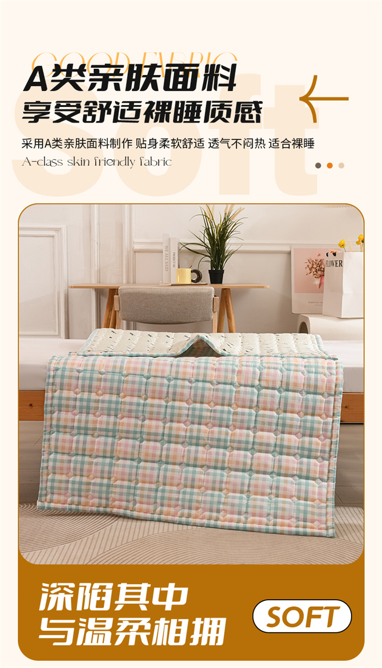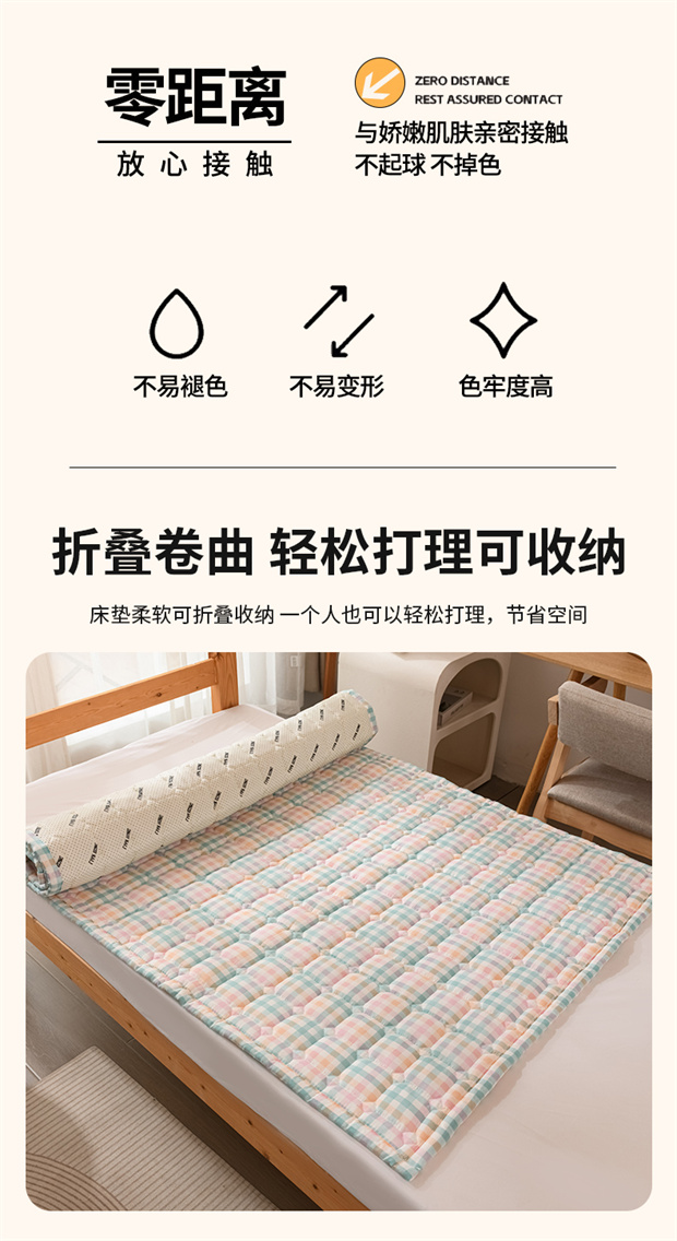 商品名称:恋绒家纺 无印风高低床学生床褥水洗棉宿舍上下铺软床垫 粉蓝格