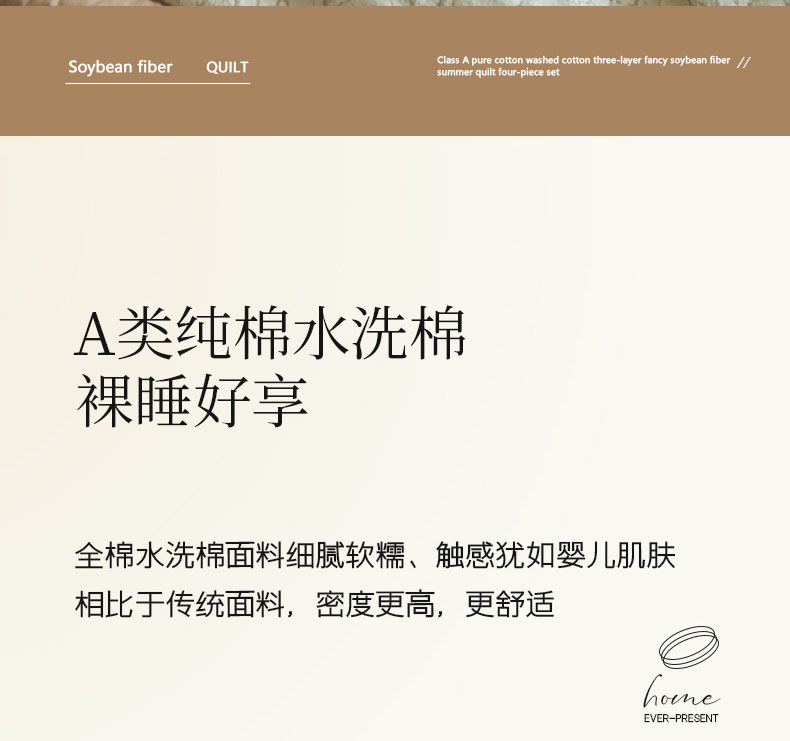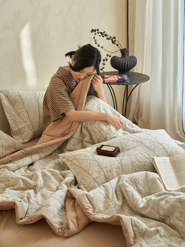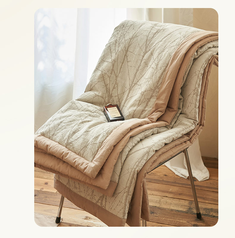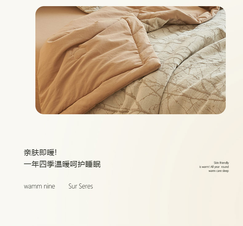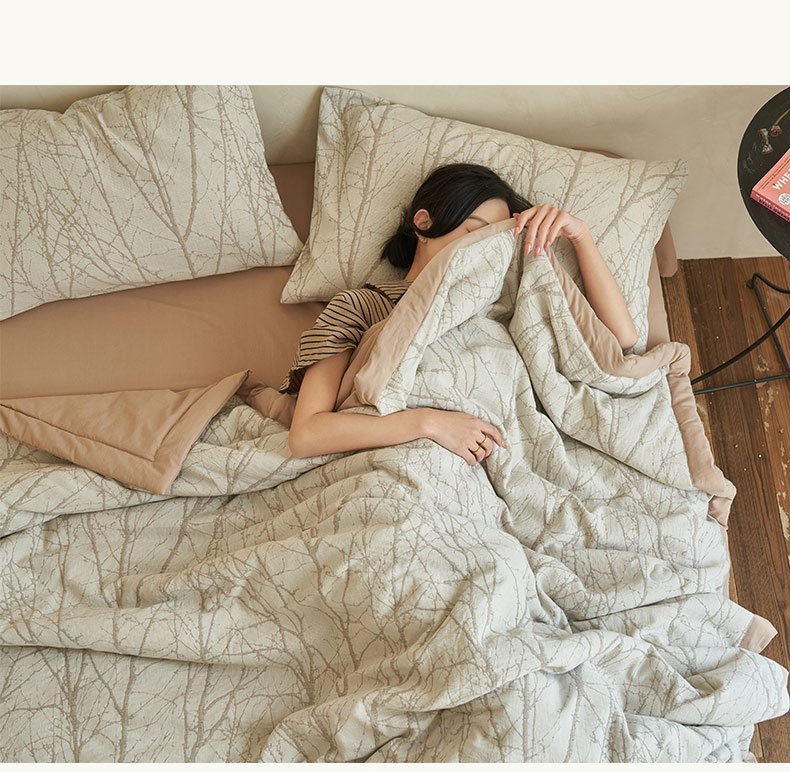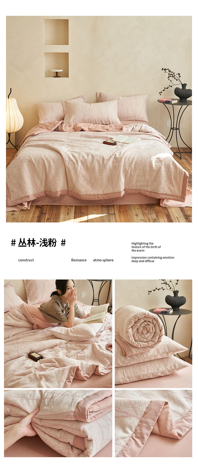 • 91家纺网 家纺一手货源 找家纺 寐绸家纺 2025新款纯棉水洗棉三层丛林提花大豆纤维夏被四件套 丛林-驼色