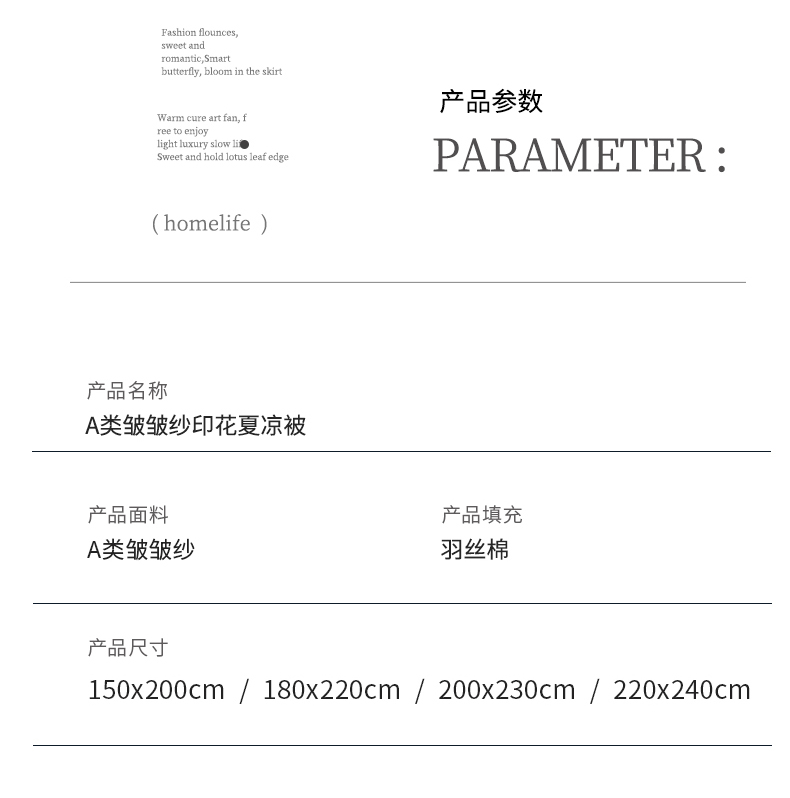 商品名称:(总)梦恬佳 2025新款A类水洗皱皱棉夏凉被