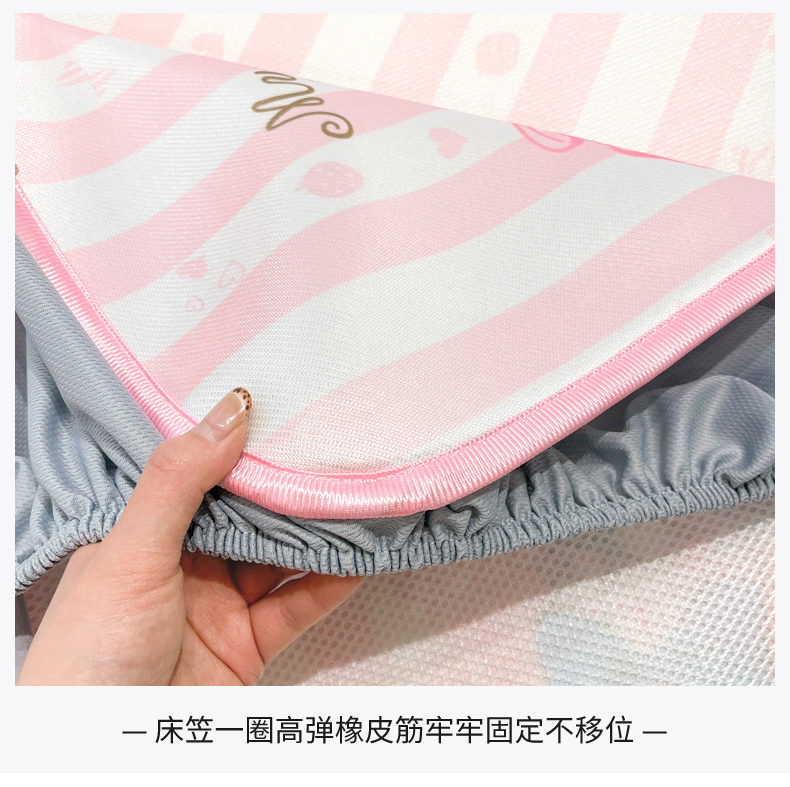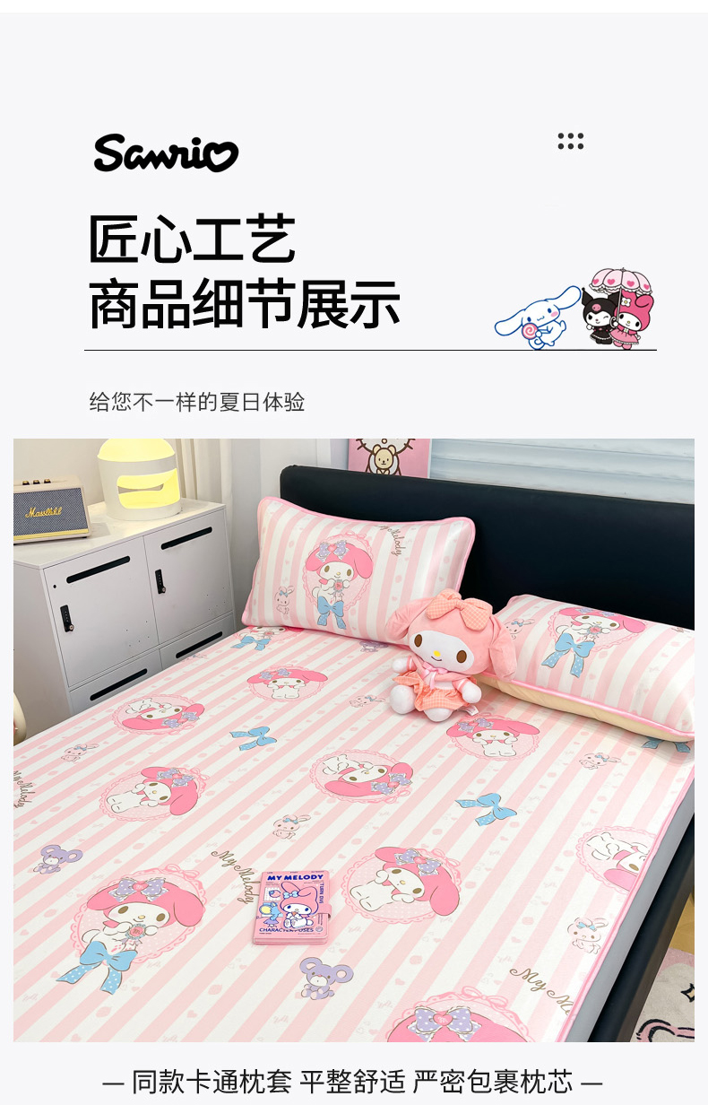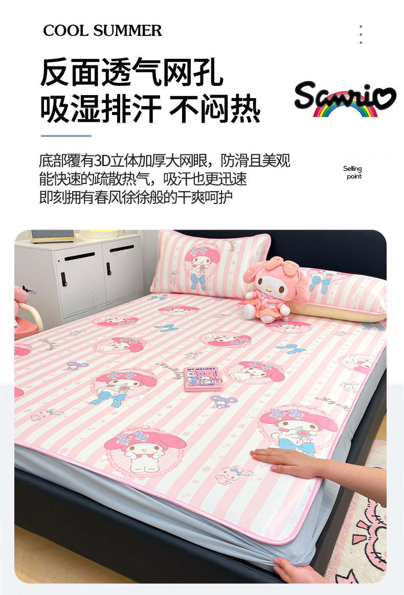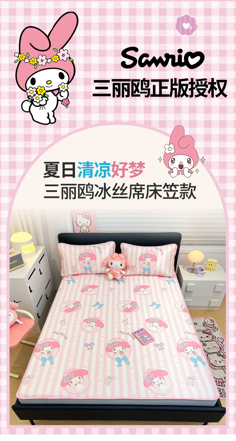 商品名称:暮思家居 2025新款三丽鸥正版授权数码印花A类可机洗1200D冰丝凉席三件套床笠款系列 床笠款-甜心美乐蒂