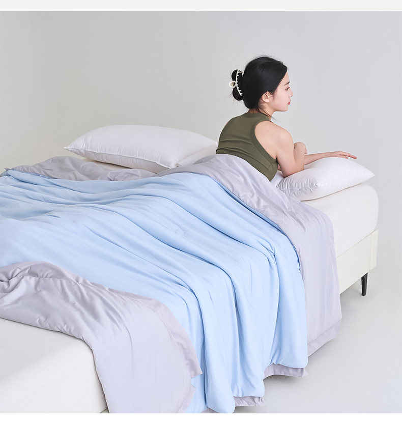 默忆 2025新款锦氨纯色双拼凉感丝夏被豆豆夏凉被空调被豆豆被 天空蓝