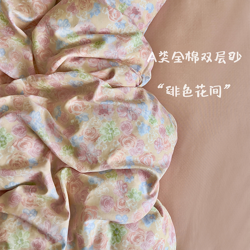 当前位置: 91家纺网 > 商品网购 > 床品套件 > 四件套 > 双层纱四件套 > 优品阁 2025新款A类全棉有氧双层纱四件套 绯色花间