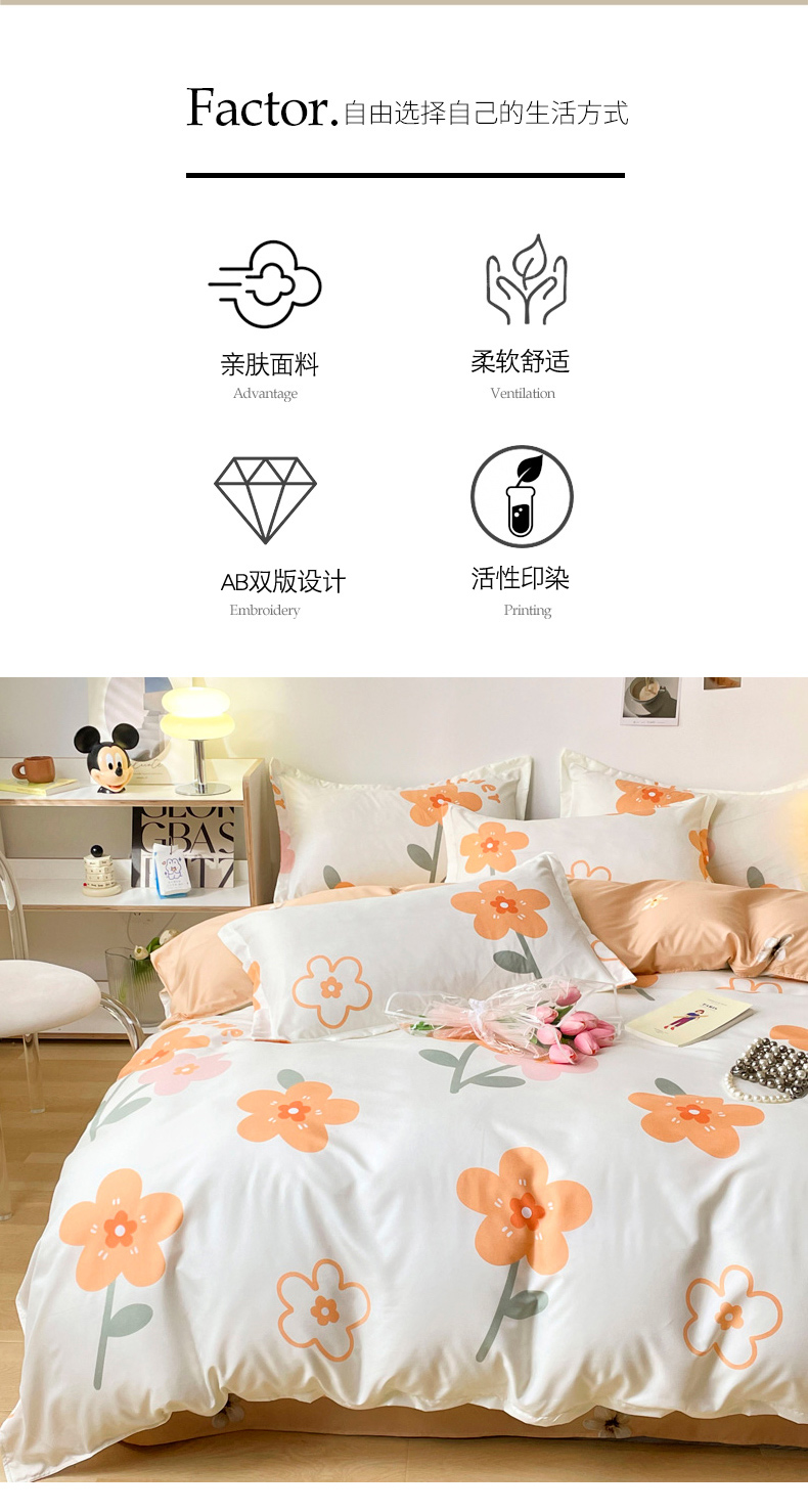 1.5m床单款四件套被套:150X200cm床单:200X230cm枕套:48X74cmX2
