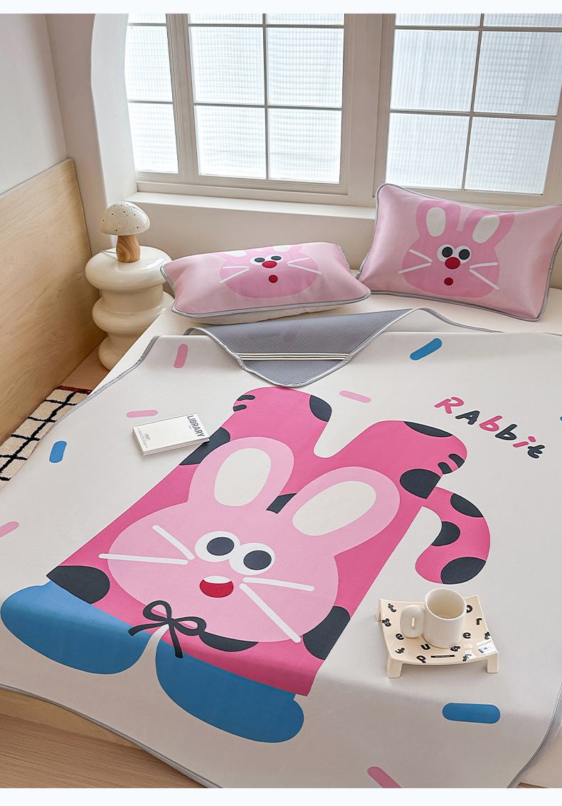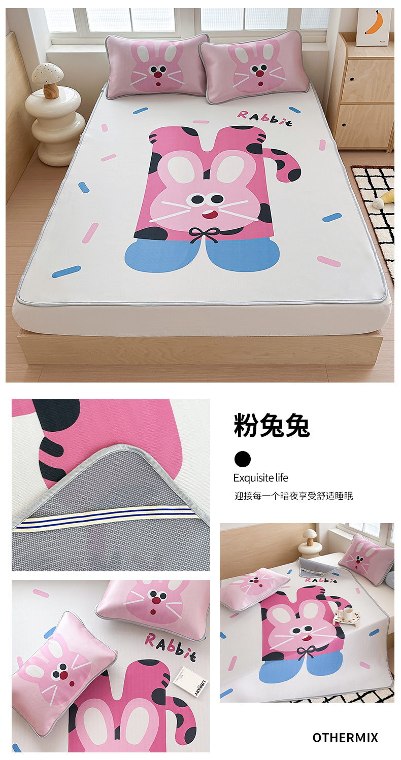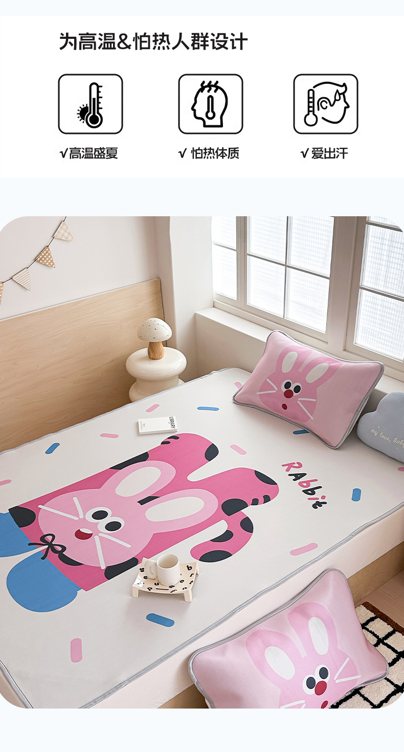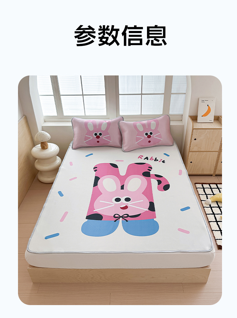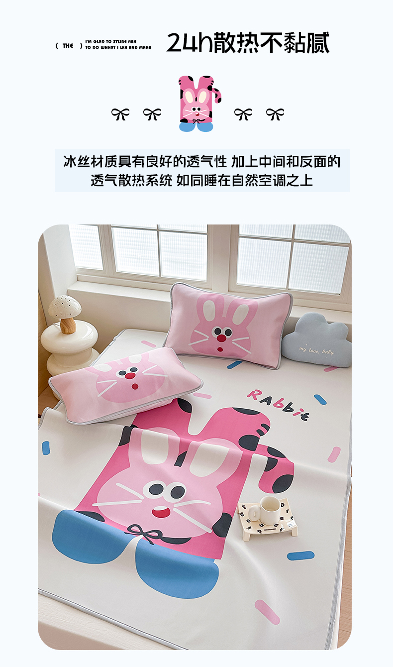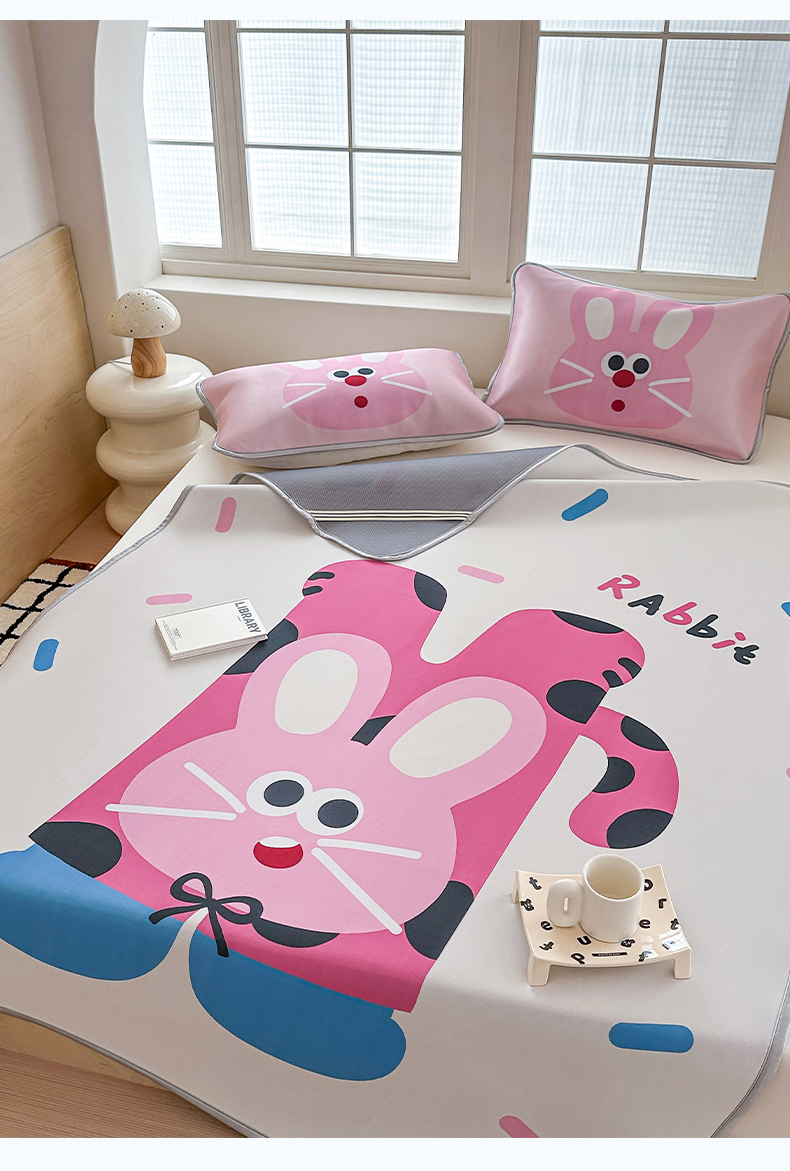 商品名称:RYB红黄兰 2025新款INS原创超萌卡通大版碳光冰丝凉席三明治空调席三件套席子 粉兔兔