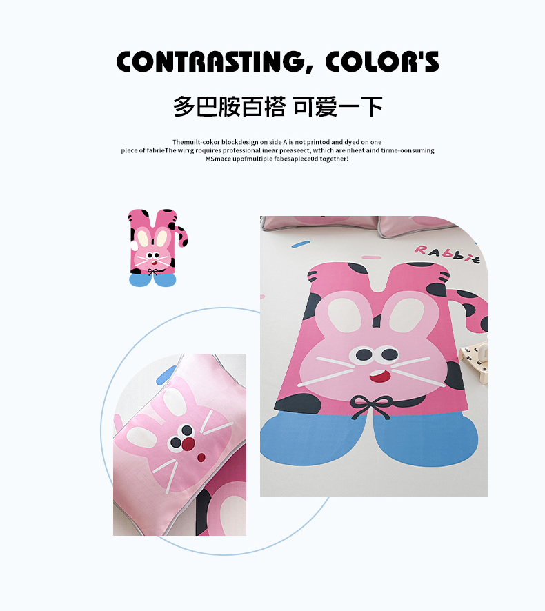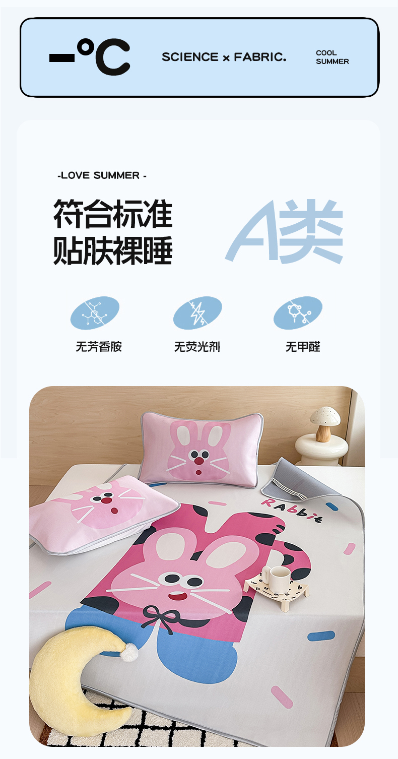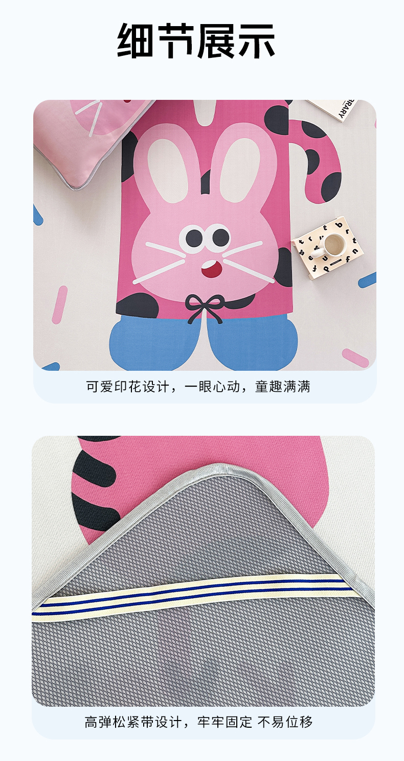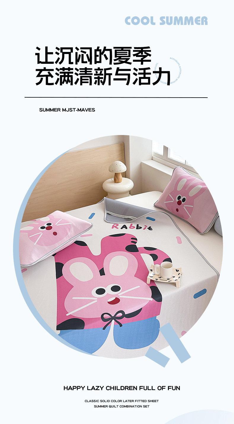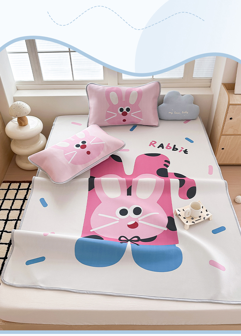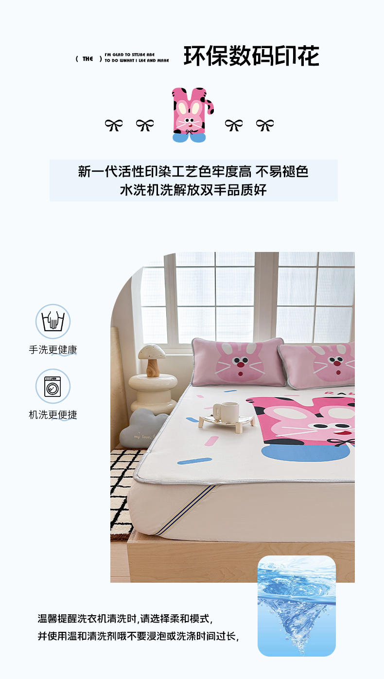 商品名称:RYB红黄兰 2025新款INS原创超萌卡通大版碳光冰丝凉席三明治空调席三件套席子 粉兔兔