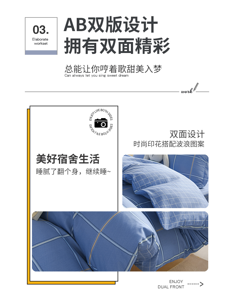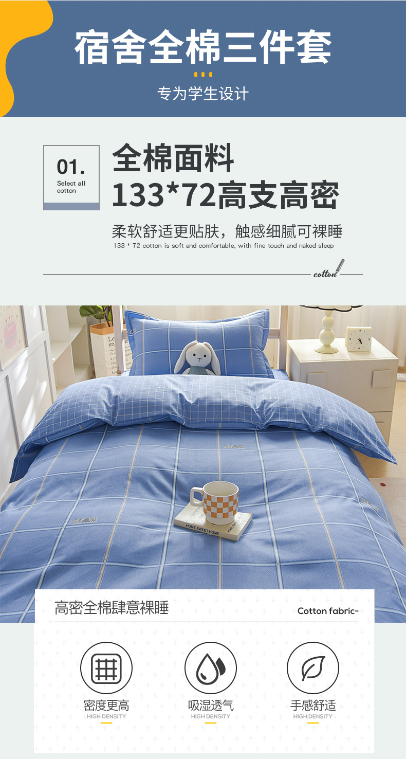 当前位置: 91家纺网 > 商品网购 > 床品套件 > 三件套 > 鑫宇 2025新款全棉13372学生宿舍印花三件套上下铺六件套 新都时尚-蓝