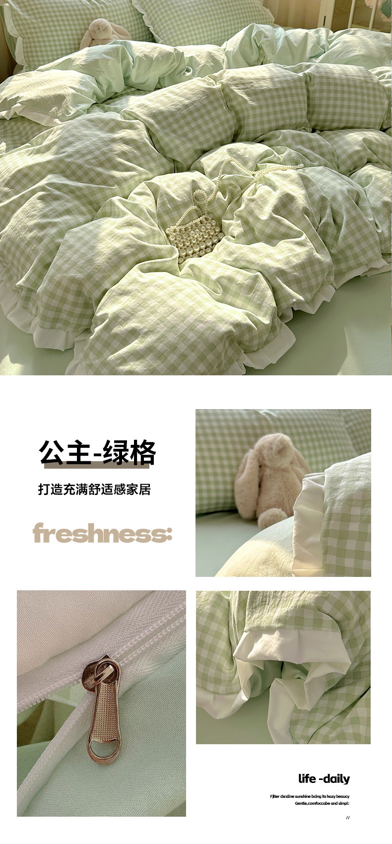 (总)冕悠家纺 2025新款A类加厚水洗棉格子点点印花超柔单品床单枕套,组合图,粉格,蓝点,蓝格,绿格,米点,紫点,紫格
