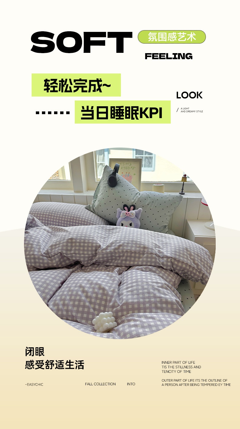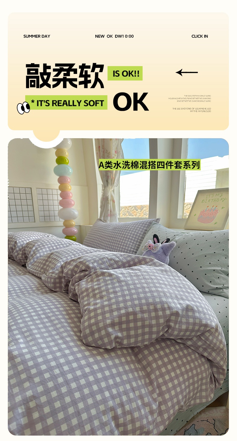 (总)冕悠家纺 2025新款A类加厚水洗棉格子点点印花超柔单品床单枕套,组合图,粉格,蓝点,蓝格,绿格,米点,紫点,紫格
