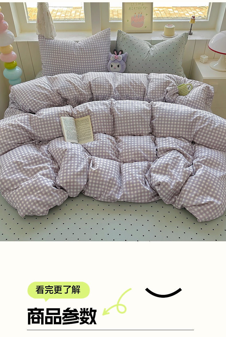 商品名称:冕悠家纺 2025新款少女心超柔加厚混搭格子水洗棉单品被套 紫格+蓝点