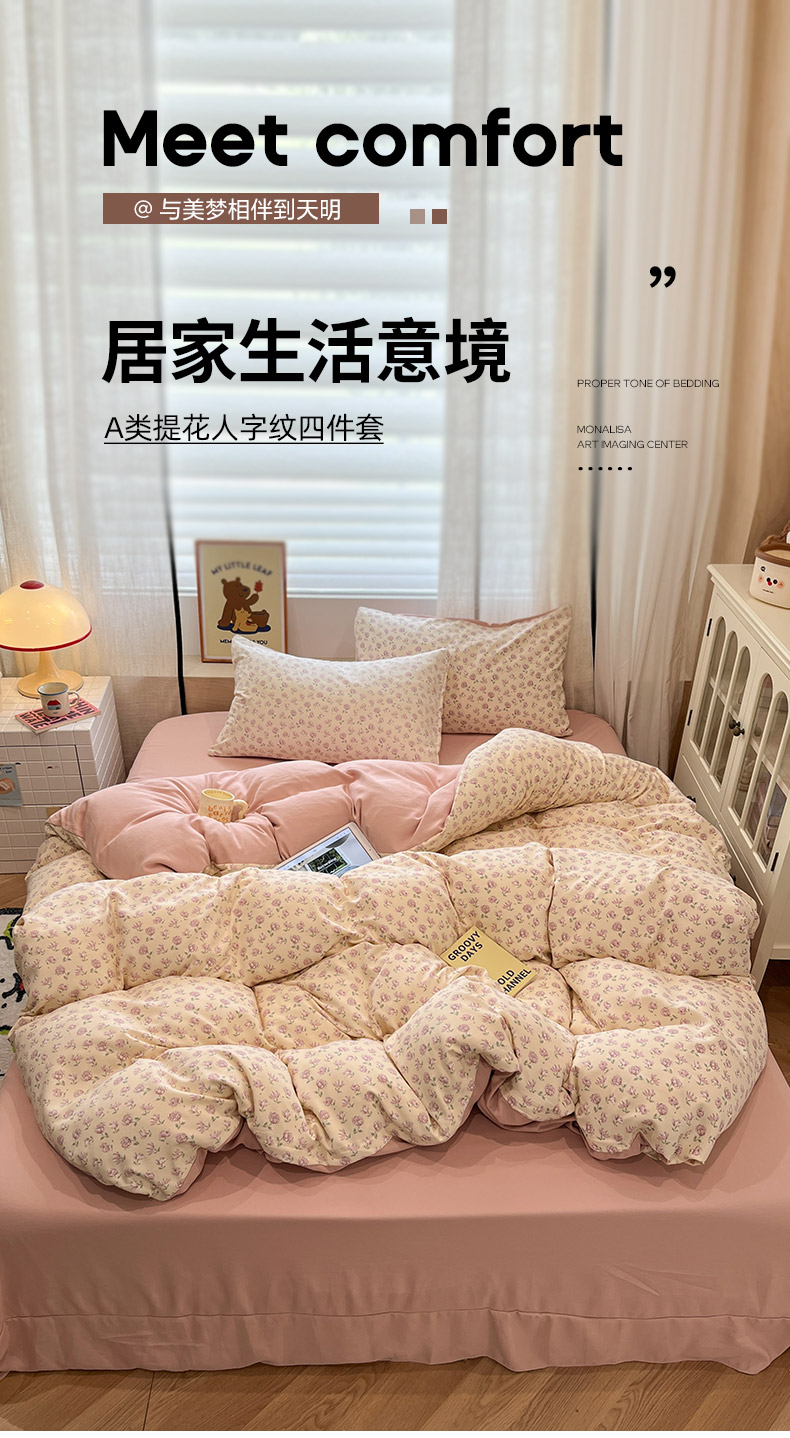 (总)金梦拉家纺 2025新款A类提花人字纹小布袋款四件套,半糖主义,爱丽丝,安娜,薄雾玫瑰,宠物狗,繁花,干枯玫瑰,海盐兰格,海盐梦境,花舍里,花信风,林间兔,铃兰语,玫瑰樱桃,蔷薇心事,柔光浅语,水木年华,素心,桃桃花语,线条小狗,小木马,小南瓜,薰衣草,颜花朝,椰椰奶狗,郁金香,紫藤香,紫薰