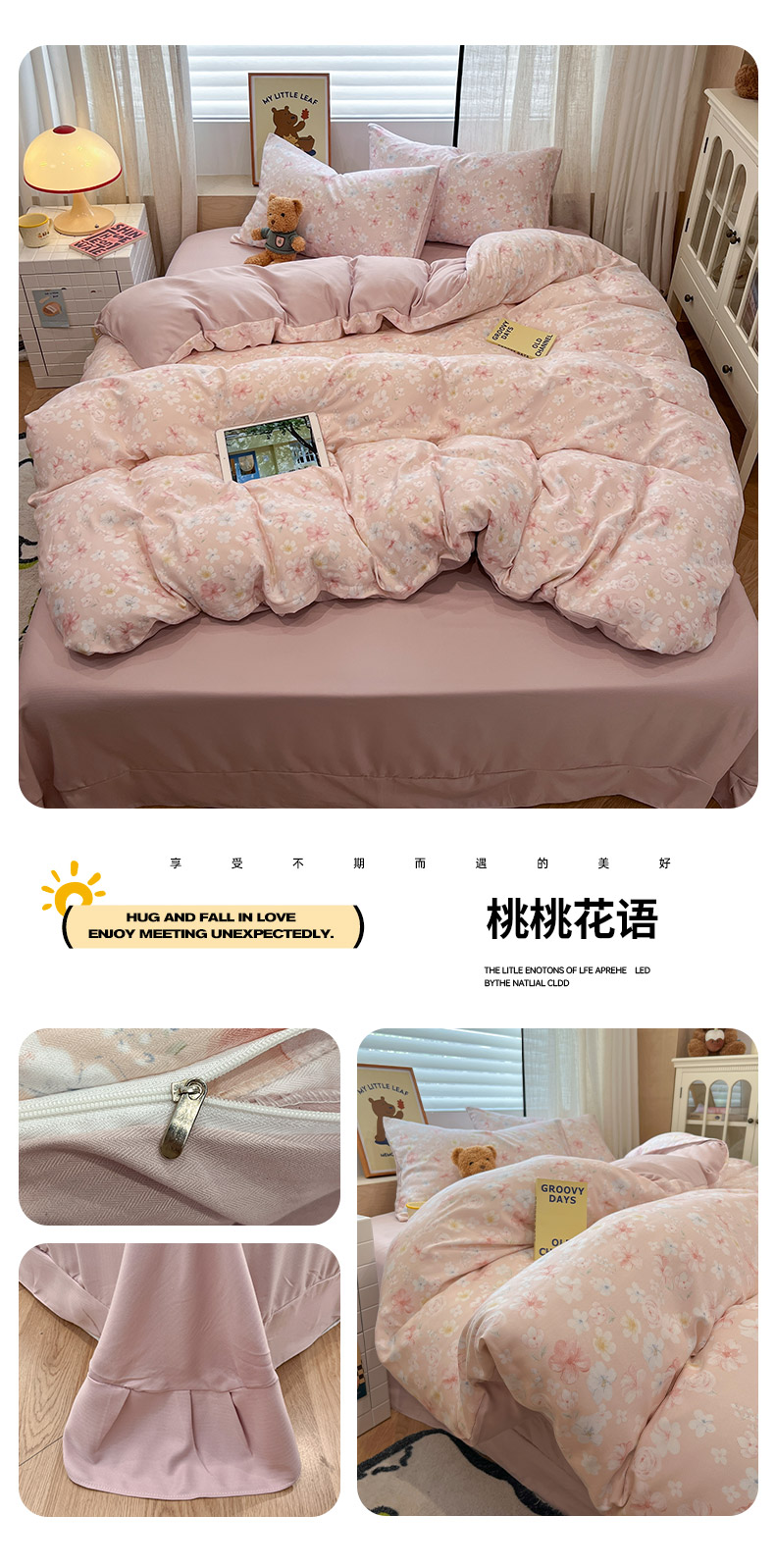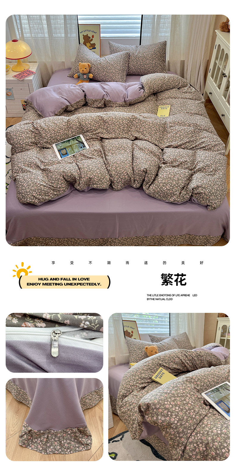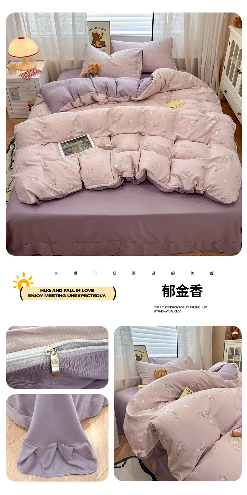 (总)金梦拉家纺 2025新款秋冬新款双层纱四件套田园风印花,小南瓜,哈基米,浪漫紫芙,梦幻星河,陌上花开,奶油波点,桃喜微风,小旺仔,紫芙香,紫曦