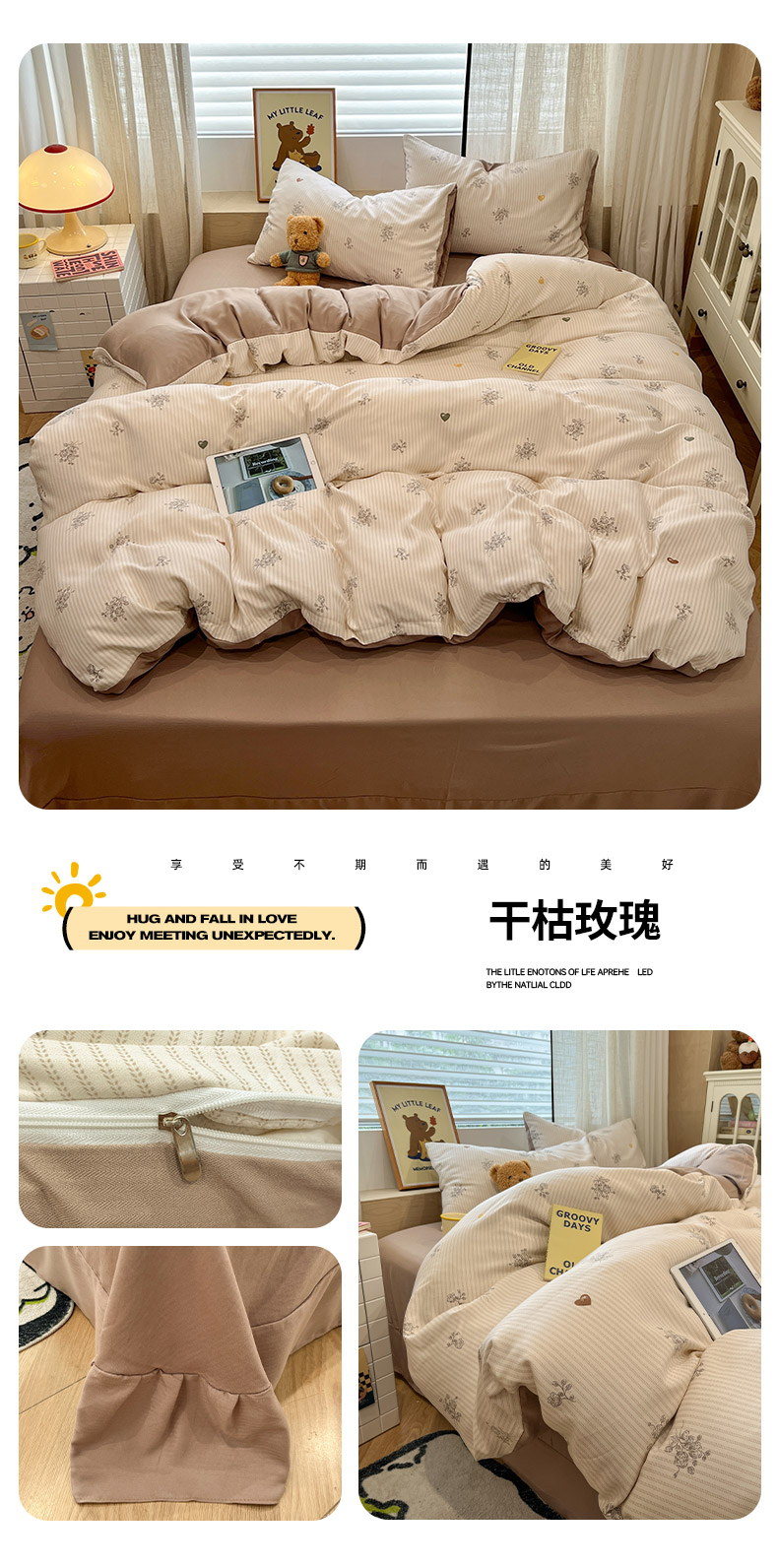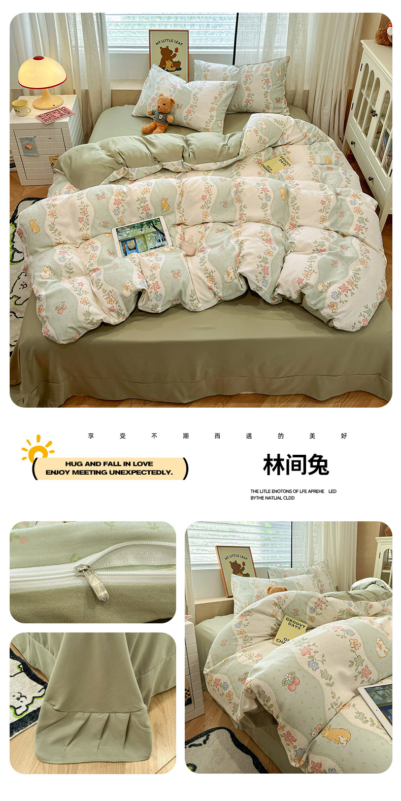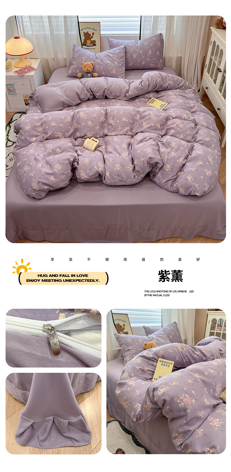 (总)2025新款A类云感提花纱布棉皱皱纱四件套(贴布风),风信子,可可栗子,快乐兔,玫瑰小能,美娜滋,蘑菇森林,淘气奶兔,紫色梦境,汪汪乐园