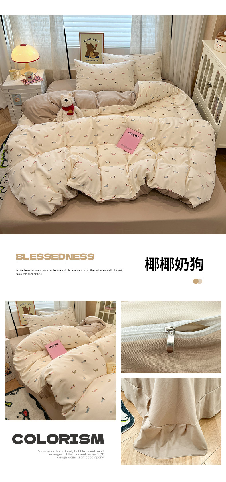 (总)金梦拉家纺 2025新款A类加厚棉绒牛奶绒床盖系列三件套,彩色波点,萌趣,组合图,紫色樱桃,小樱桃,小南瓜,碎花小熊,小奶兔,繁花,花枝香